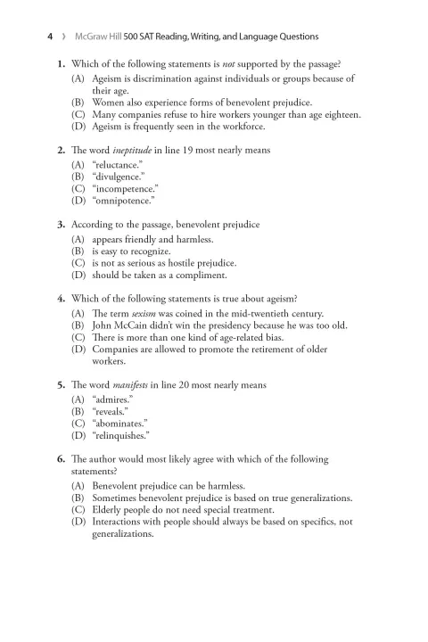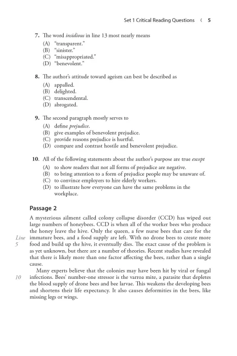SAT style questions covering all the essential reading, writing and