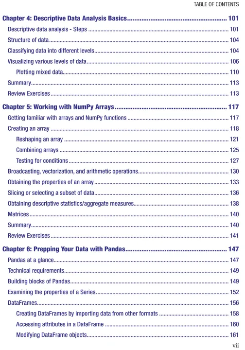 concepts and terminology, and one chapter each on NumPy(the