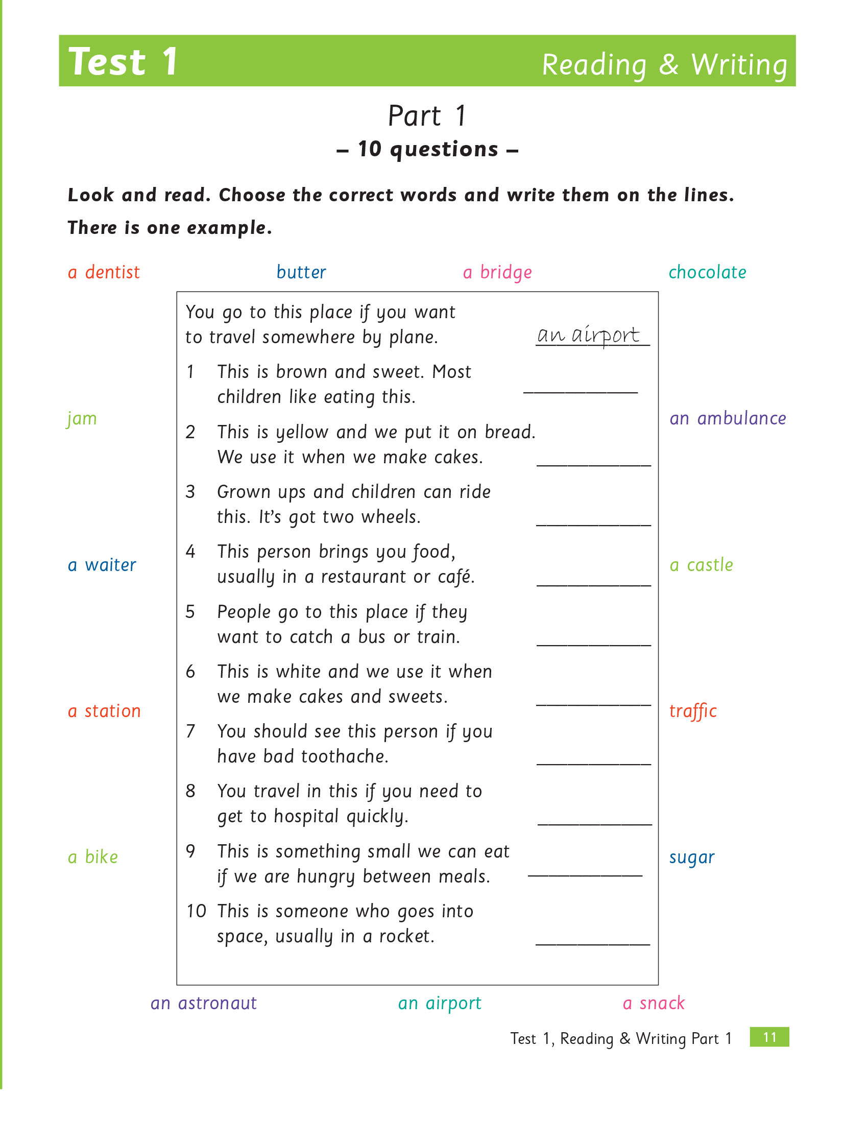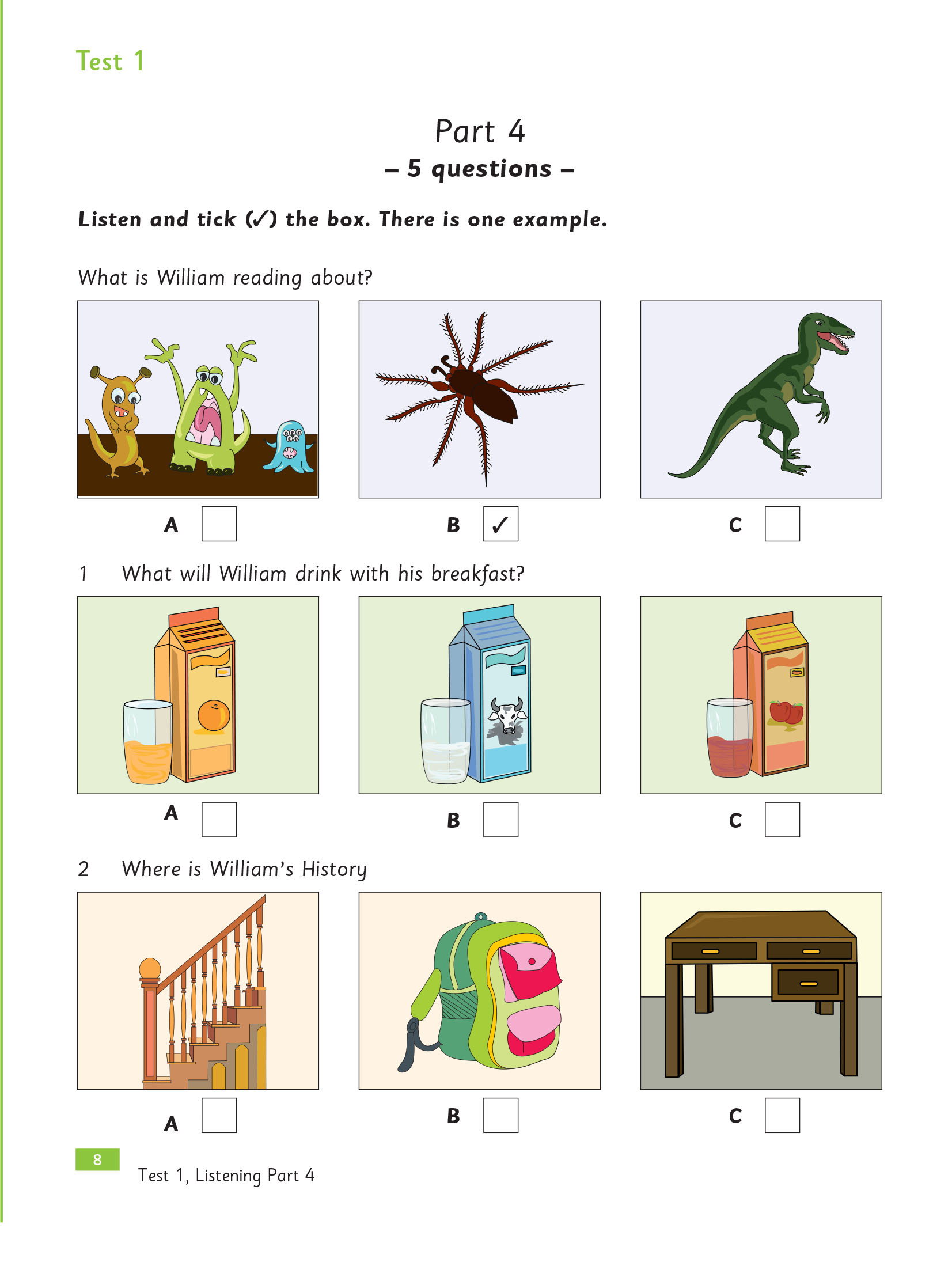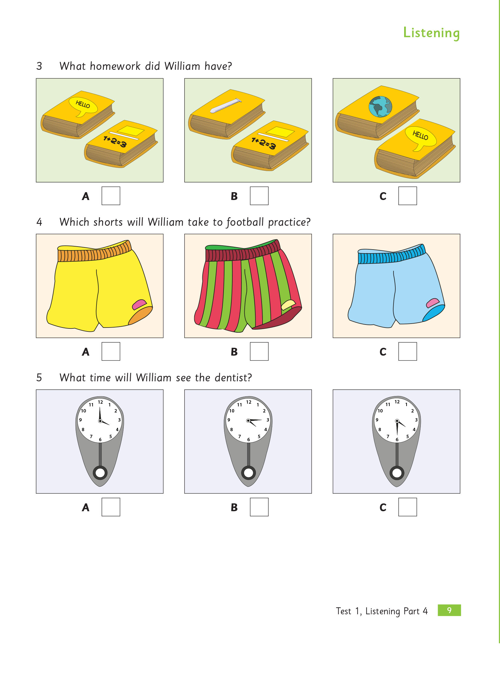 The Student's Book which contains five practice tests. Each test is divided into three sections: Listening. Reading & Writing and Speaking. Teachers may wish to use some of the tests as classroom practise activities before doing the others under exam conditions.