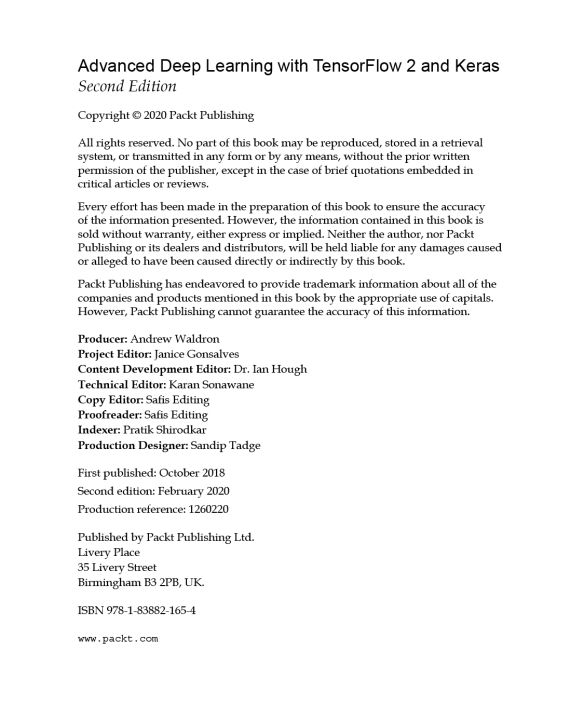 Advanced Deep Learning with TensorFlow 2 and Keras, Second Edition is a completely updated edition of the bestselling guide to the advanced deep learning techniques available today. Revised for TensorFlow 2.x, this edition introduces you to the practical side of deep learning with new chapters on unsupervised learning using mutual information, object detection (SSD), and semantic segmentation (FCN and PSPNet), further allowing you to create your own cutting-edge AI projects.