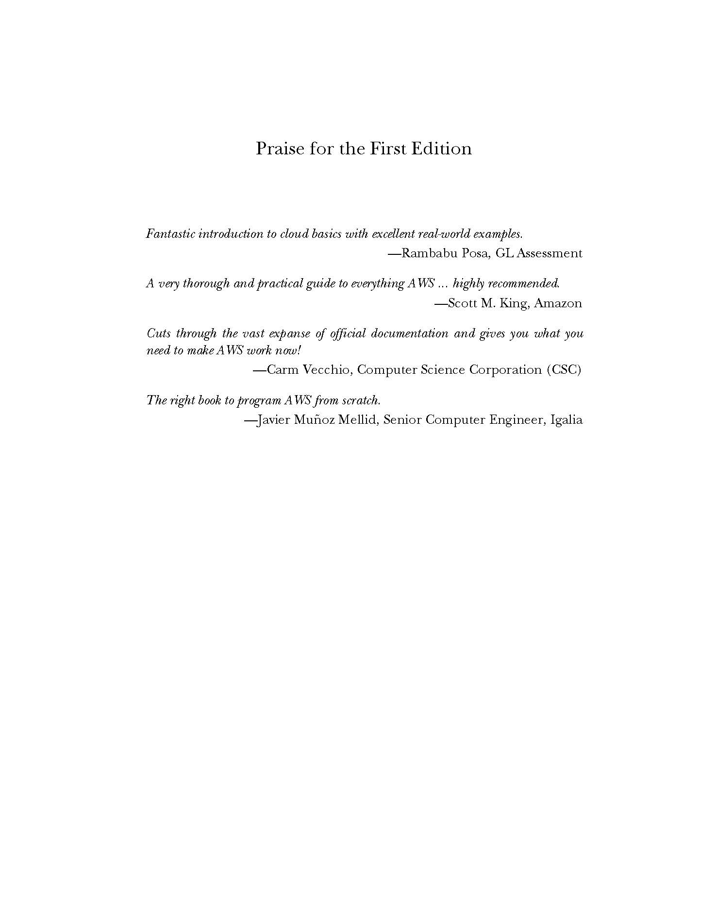 Amazon Web Services in Action, Second Edition is a comprehensive introduction to computing, storing, and networking in the AWS cloud. You'll find clear, relevant coverage of all the essential AWS services you to know, emphasizing best practices for security, high availability and scalability.