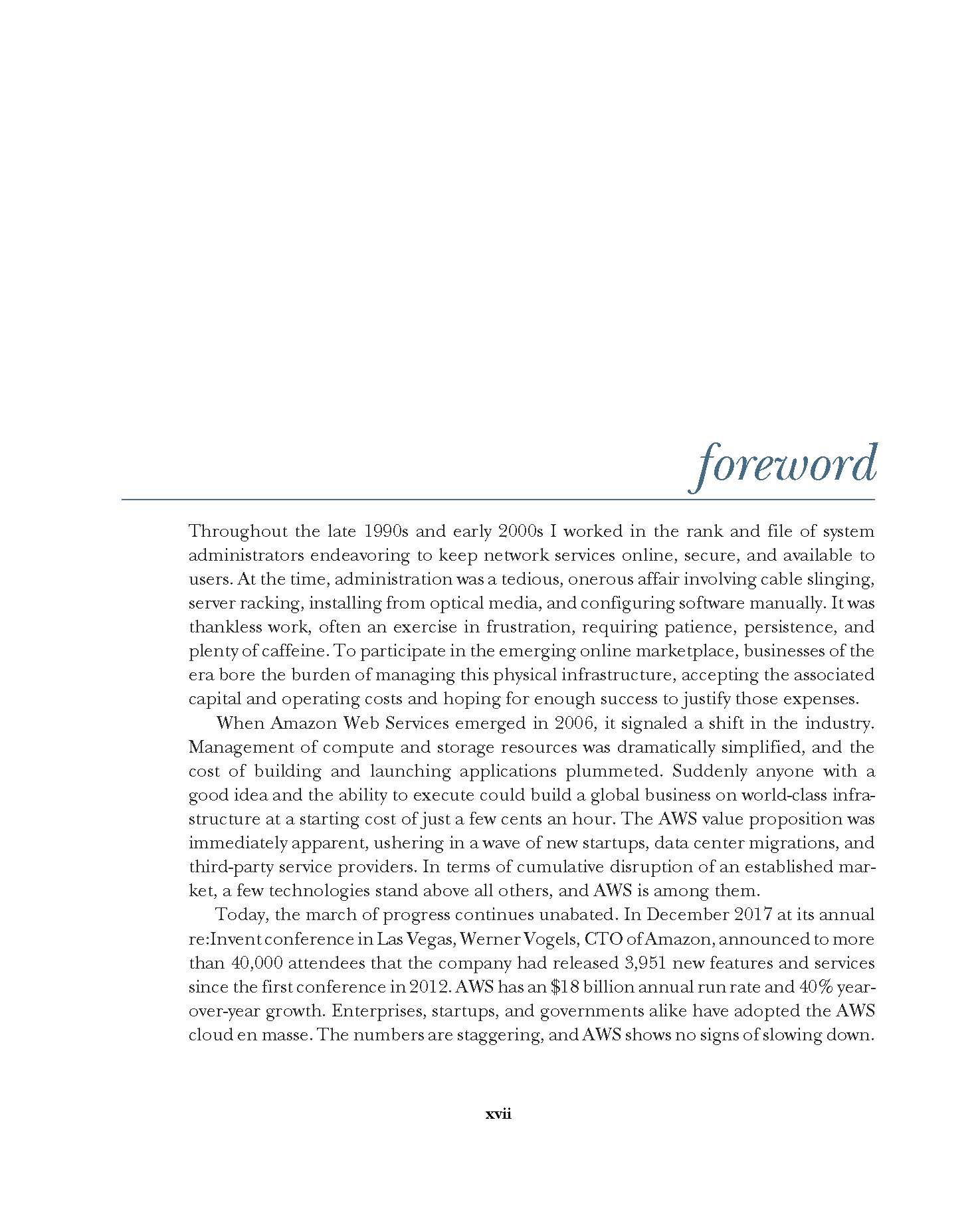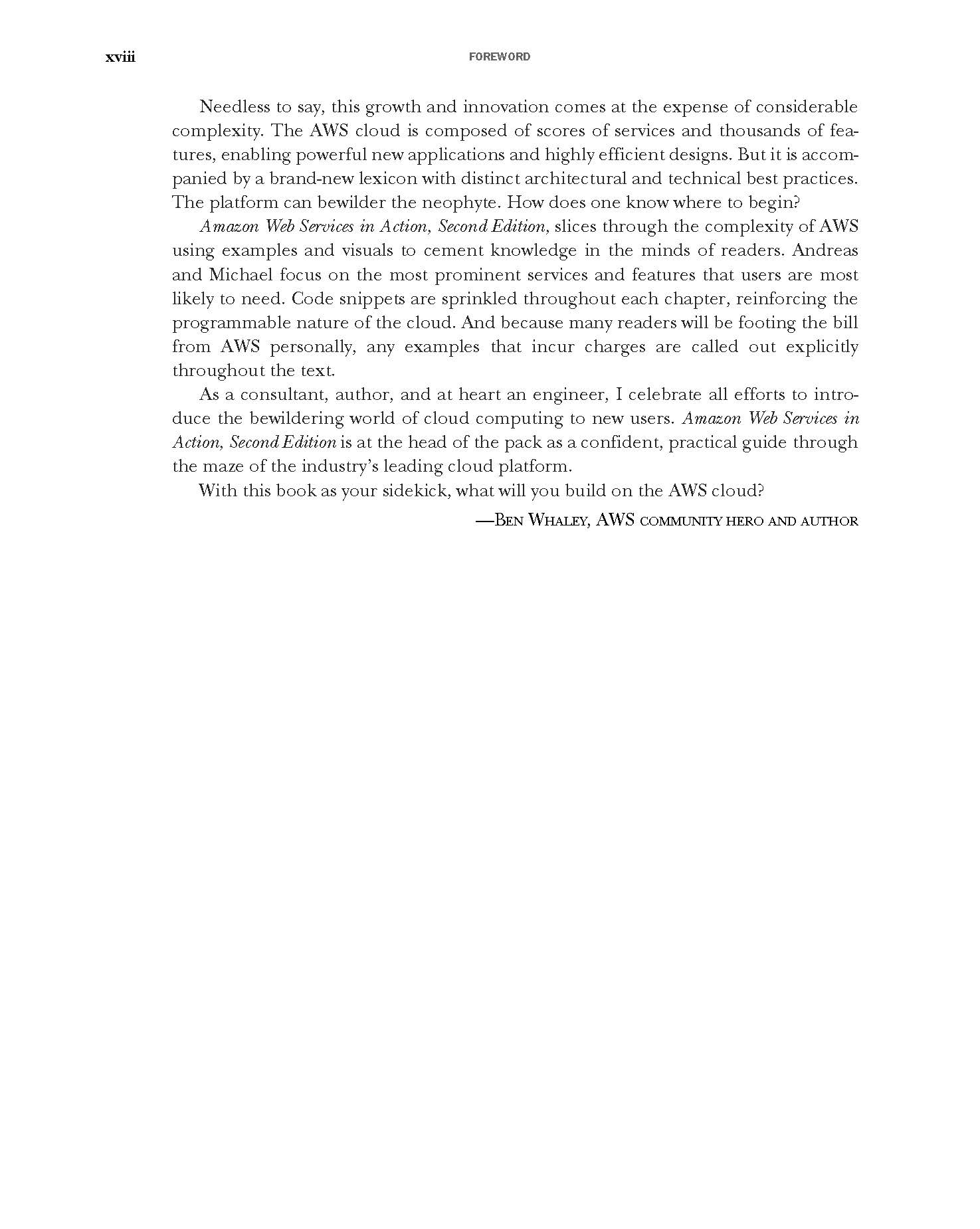 Amazon Web Services in Action, Second Edition is a comprehensive introduction to deploying web applications in the AWS cloud. You'll find clear, relevant coverage of all essential AWS services, with a focus on automation, security, high availability, and scalability. This thoroughly revised edition covers the latest additions to AWS, including serverless infrastructure with AWS Lambda, sharing data with EFS, and in-memory storage with ElastiCache.