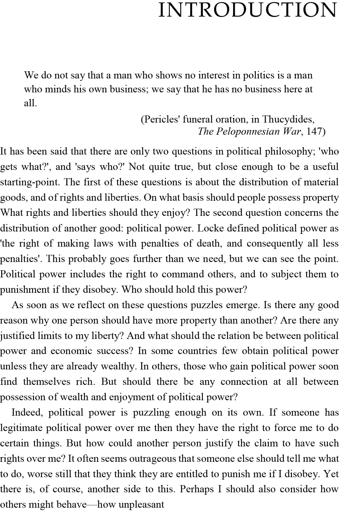 What would life be like without the state? What justifies the state? Who should rule? How much liberty should the citizen enjoy? How should property be justly distributed? This book examines the central problems involved in political philosophy and the past attempts to respond to these problems. Jonathan Wolff looks at the works of Plato, Hobbes, Locke, Rousseau, Mill, Marx, and Rawls (among others), examining how the debates between philosophers have developed, and searching for possible answers to these provocative questions. His final chapter looks at more recent issues, particularly feminist political theor