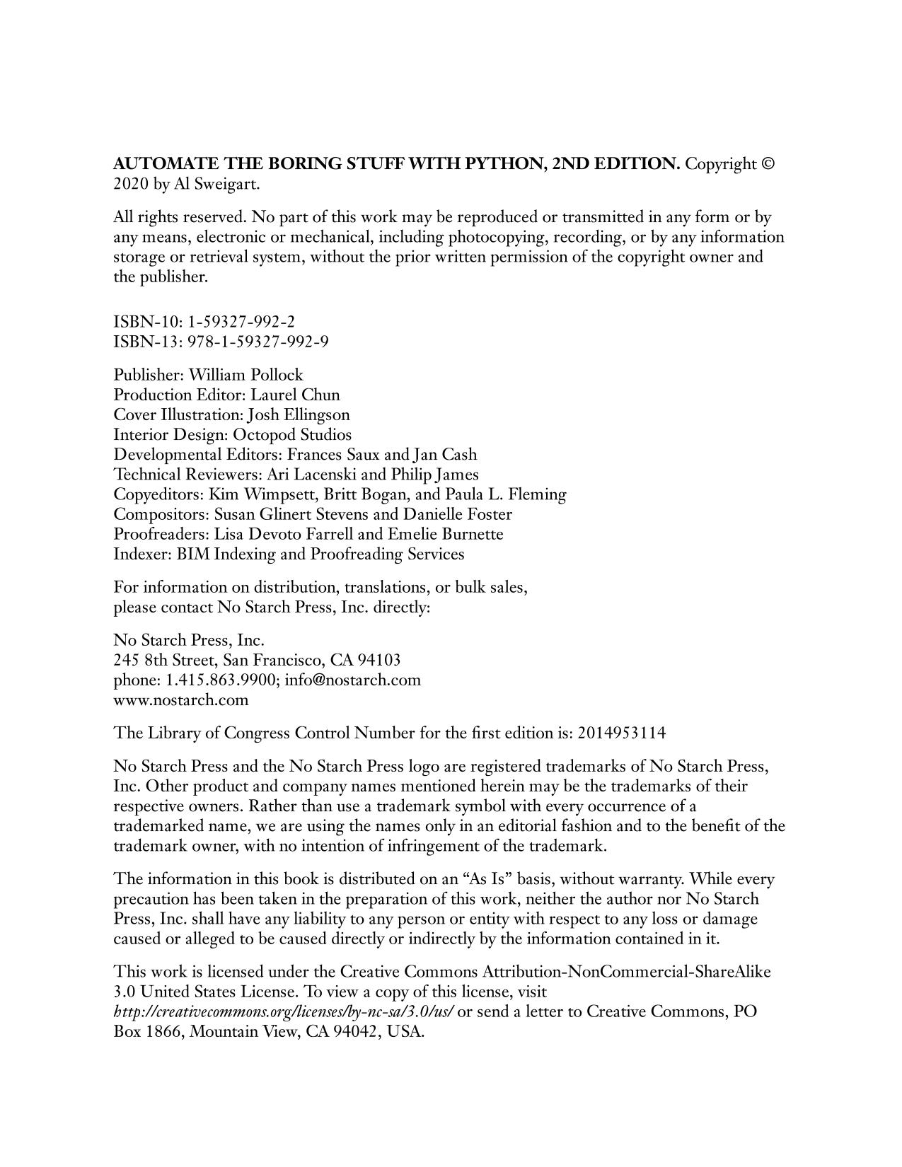 The second edition of this international fan favorite includes a brand-new chapter on input validation, as well as tutorials on automating Gmail and Google Sheets, plus tips on automatically updating CSV files. You'll learn how to create programs that effortlessly perform useful feats of automation to: