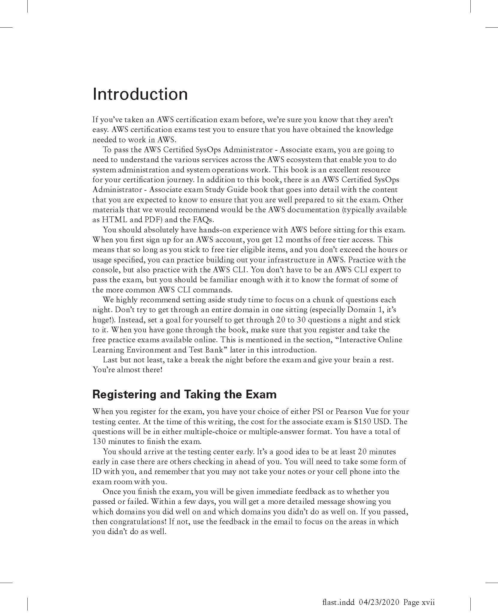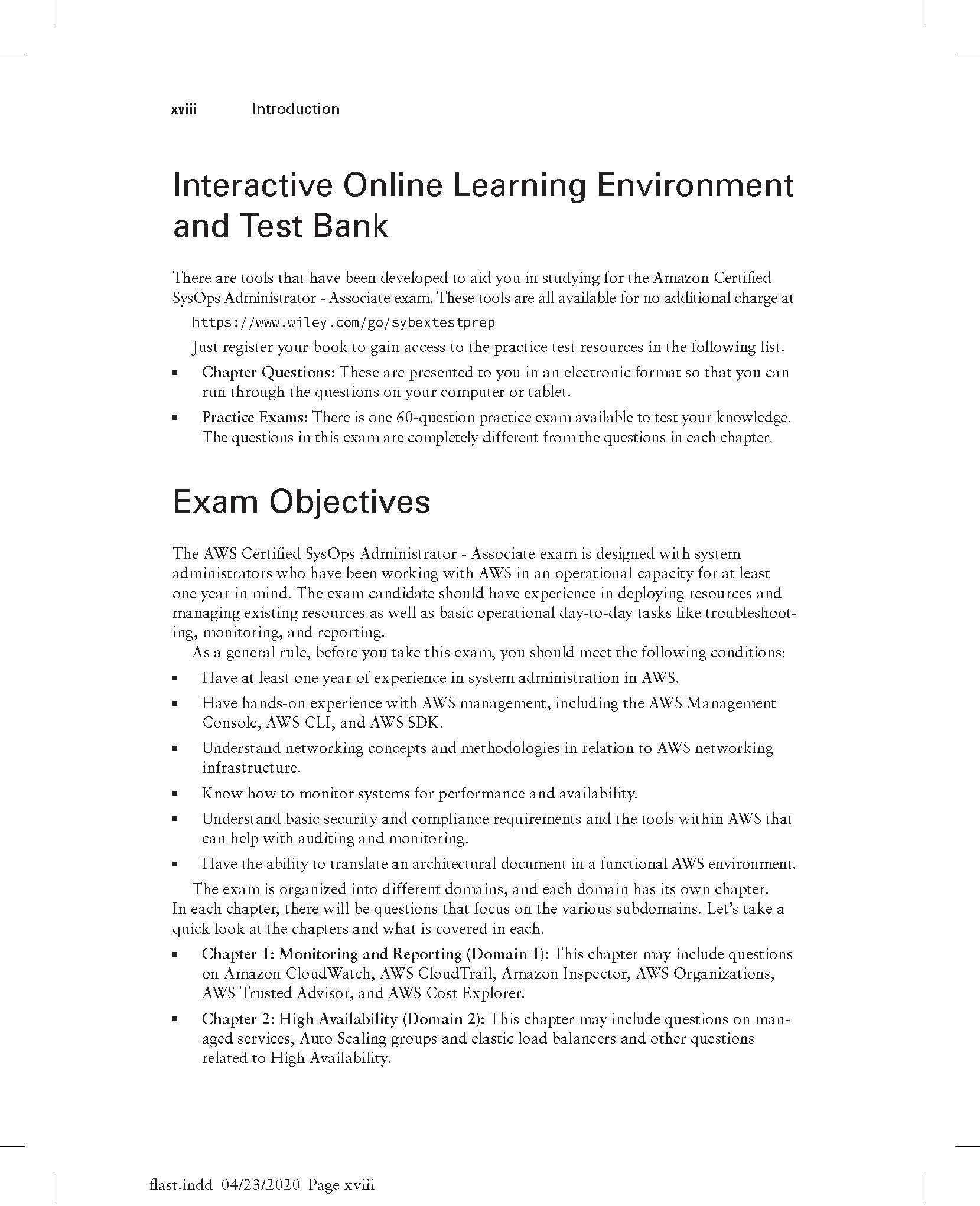 You can prepare for test success with AWS Certified SysOps Administrator Practice Tests: Associate (SOA-C01) Exam. It provides a total of 1,000 practice questions that get you ready for the exam. The majority of questions are found within seven practice tests, which correspond to the seven AWS Certified SysOps Administrator Associate SOA-C01 Exam objective domains. Additionally, you can take advantage of an extra practice exam, or utilize an online test bank as an additional study resource.