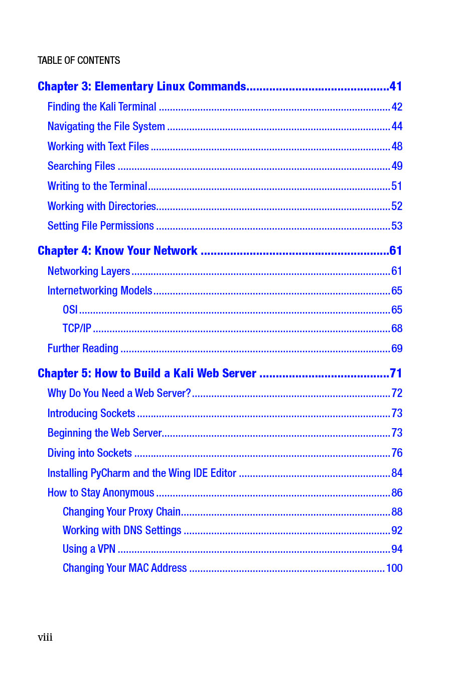 After an introduction to Kali Linux, you will carry out your first penetration tests with Python and code raw binary packets for use in those tests. You will learn how to find secret directories on a target system, use a TCP client in Python, and scan ports using NMAP. Along the way you will discover effective ways to collect important information, track email, and use important tools such as DMITRY and Maltego, as well as take a look at the five phases of penetration testing.
