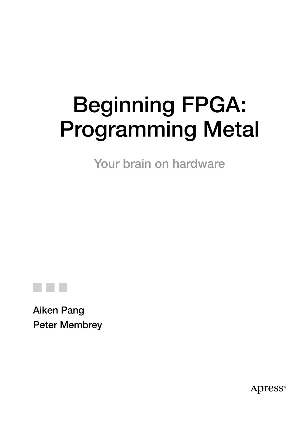 You don't need an electronics engineering degree or even any programming experience to get the most out of Beginning FPGA: Programming Metal. Just bring your curiosity and your Field-Programmable Gate Array. This book is for those who have tinkered with Arduino or Raspberry Pi, and want to get more hands-on experience with hardware or for those new to electronics who just want to dive in.