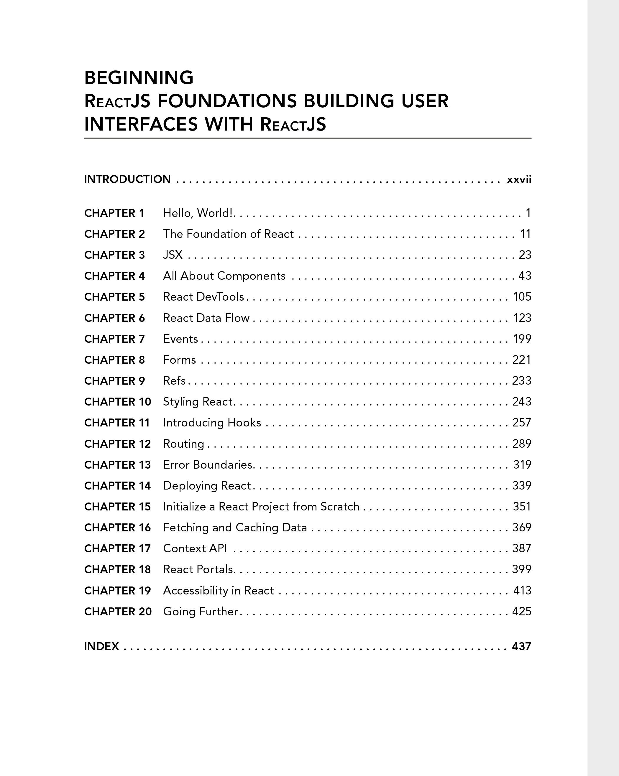 Get up to speed on building applications with ReactJS with this practical yet very approachable book that will provide you with everything you need to understand what React is and how to start building applications with it. You will learn through practical examples and different techniques, tools, and patterns used in day-to-day React work. This book will not assume you know what all of the technical terms mean, rather for those who are unfamiliar or are entry-level engineers, terms will be clarified and explained providing readers with relevant and modern-day examples for today’s engineer. This is not to say a non-beginner can’t learn a trick or two from this book! This book is set up in a way that is approachable for beginners as well as “easily skimmable” for more seasoned programmers who are just looking to get up to speed with React Quickly.