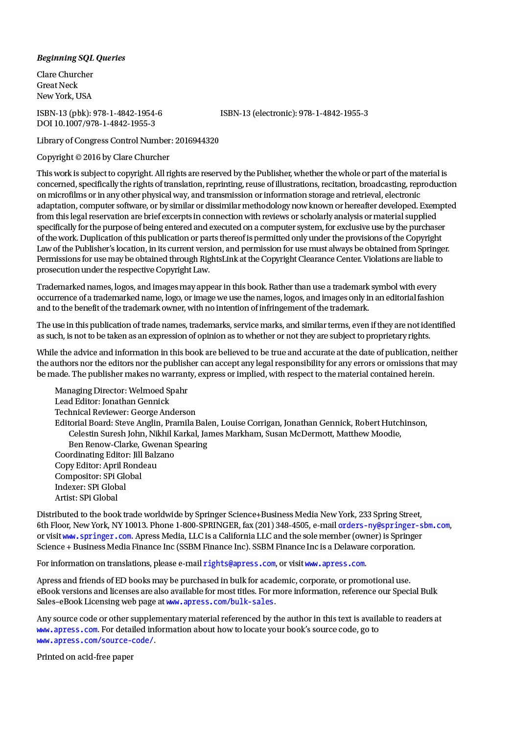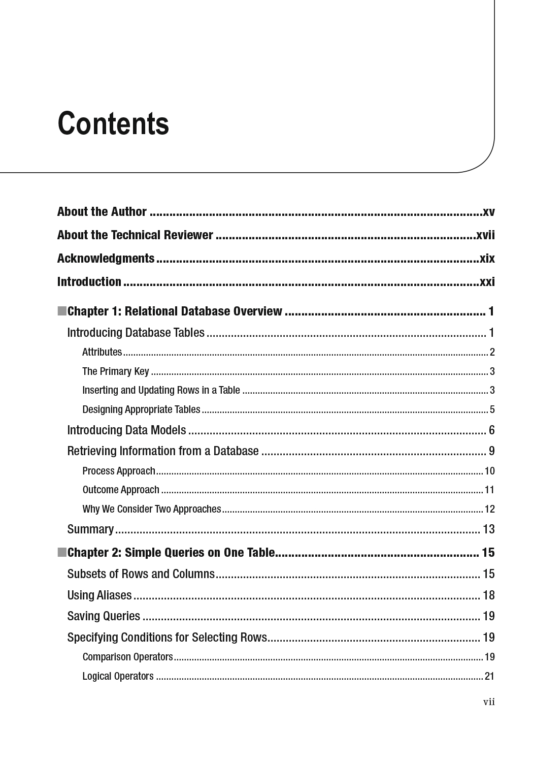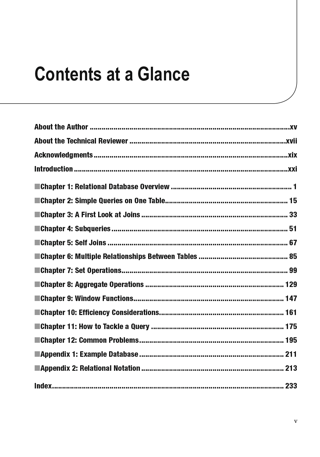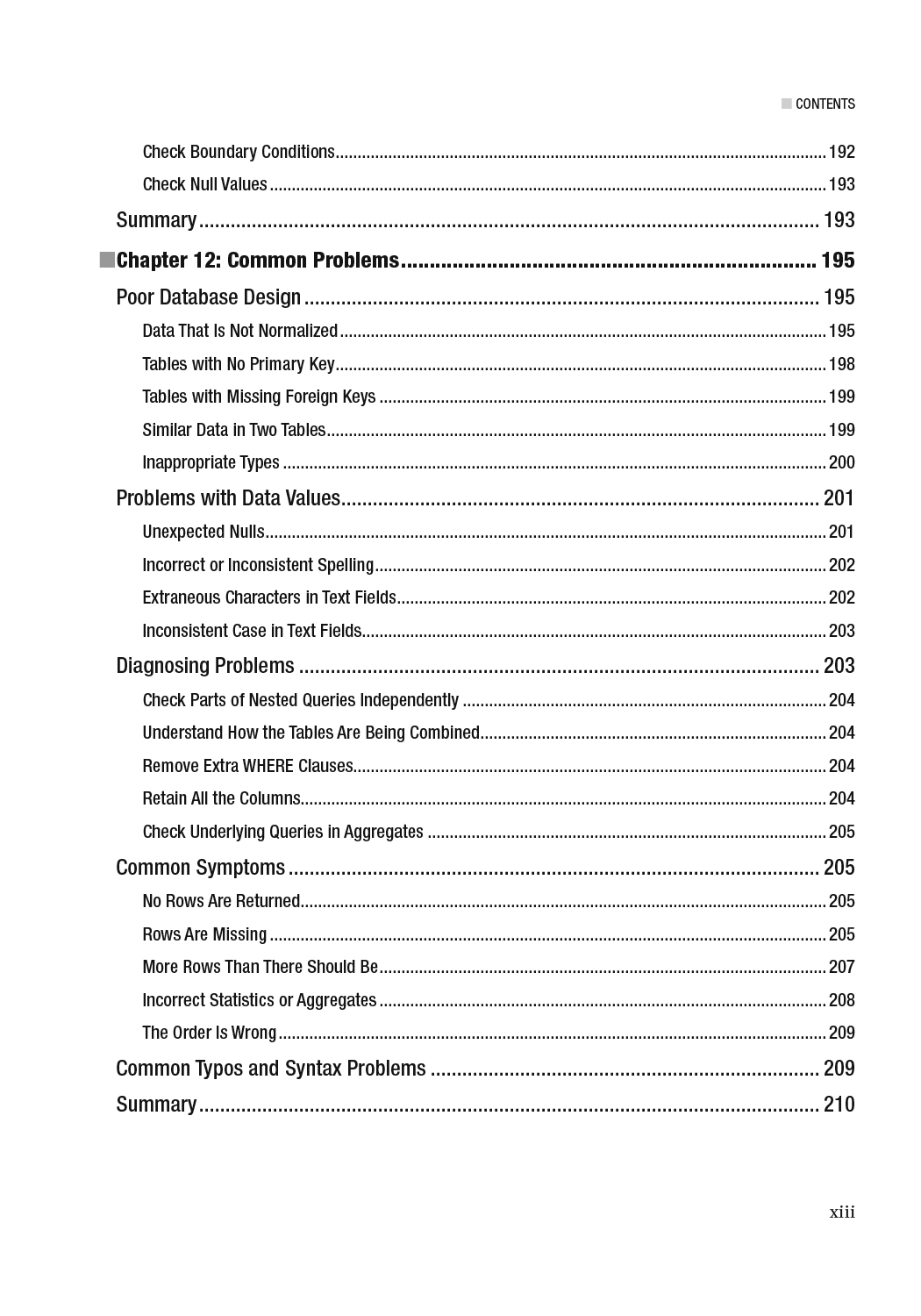 This book is for anyone who has a well-designed relational database and needs to extract information from it. You might have noticed in the previous sentence that the database must be “well designed.” I can’t overemphasize this point. If your database is badly designed, then it will not be able to store accurate and consistent data, and so the information your queries retrieve will always be prone to inaccuracies. If you are looking to design a database from scratch, you should read my first book Beginning Database Design .” The final chapter in this book will outline a few common design problems you are likely to come across and give some advice about how to mitigate the impact or correct the problem.