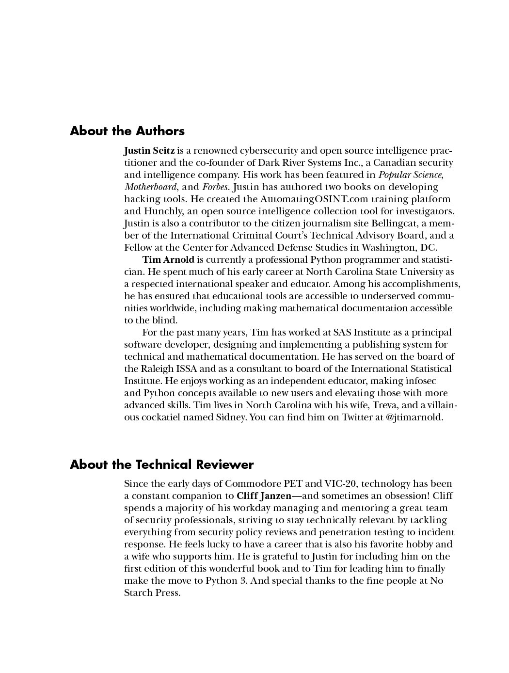 In Black Hat Python, the latest from Justin Seitz (author of the best-selling Gray Hat Python), you'll explore the darker side of Python's capabilities—writing network sniffers, manipulating packets, infecting virtual machines, creating stealthy trojans, and more. You'll learn how to: