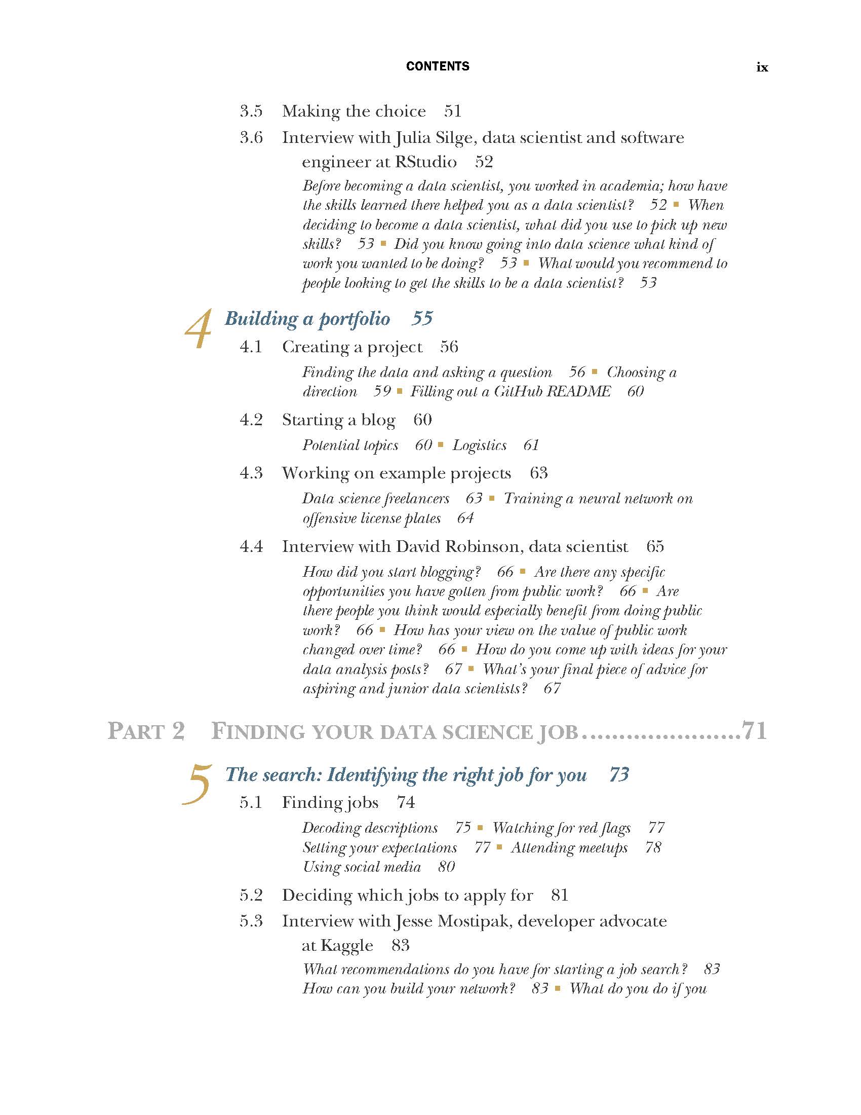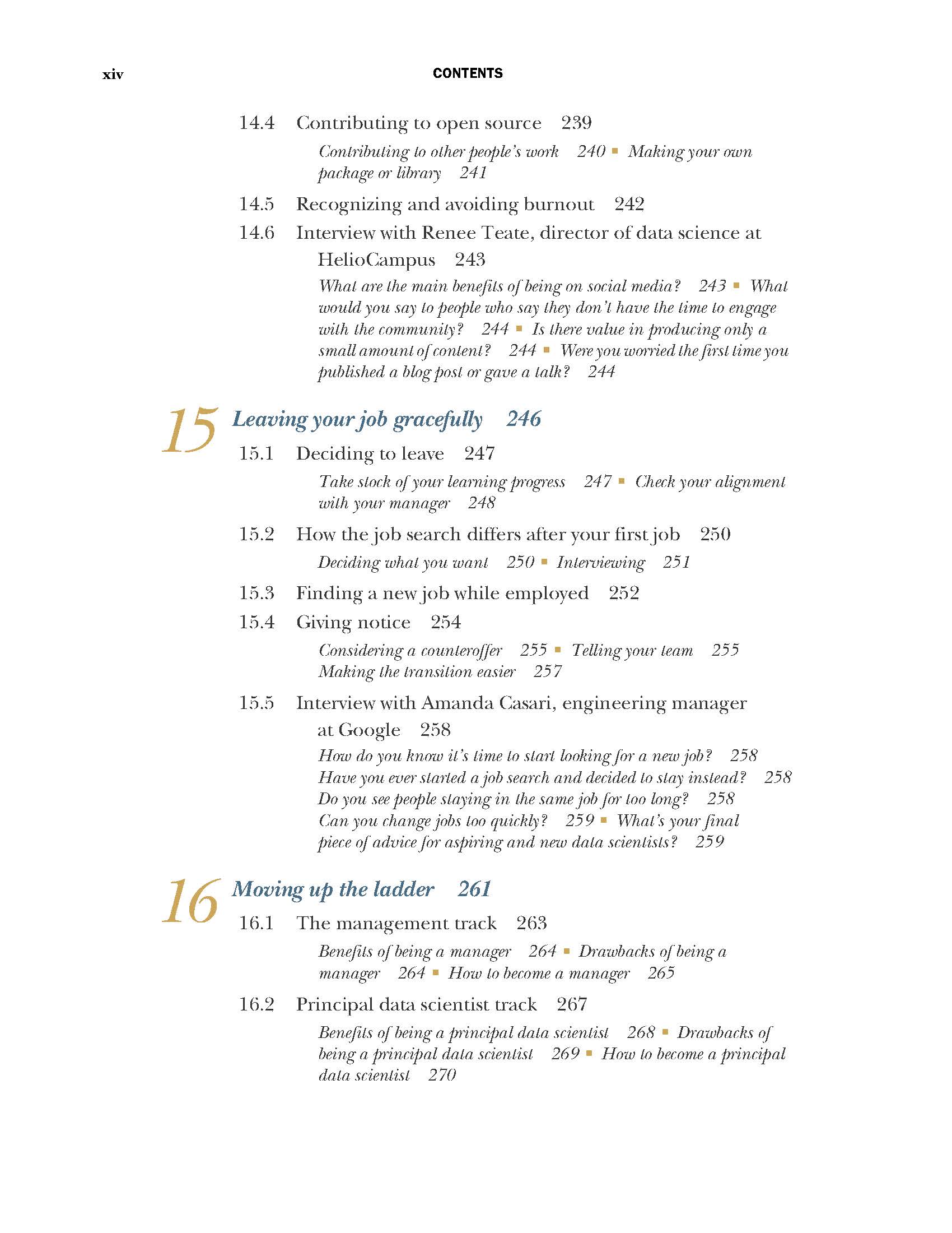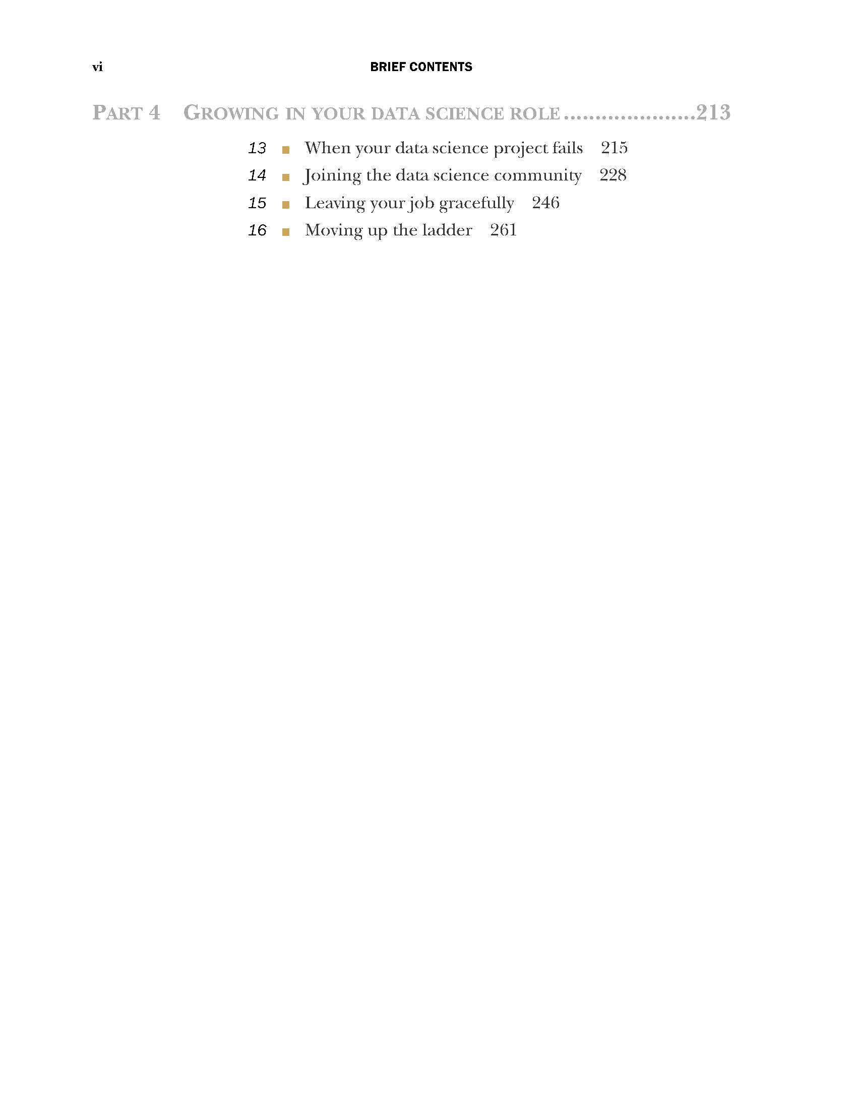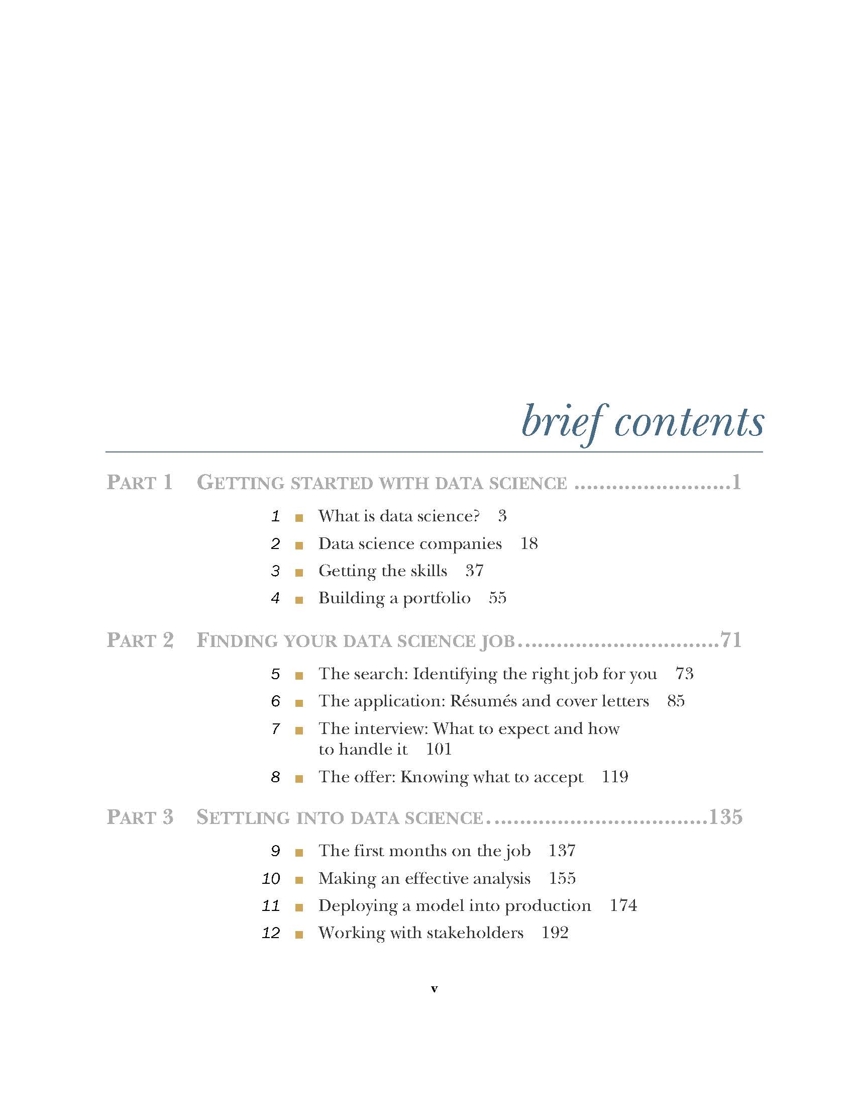 Build a Career in Data Science is your guide to landing your first data science job and developing into a valued senior employee. By following clear and simple instructions, you'll learn to craft an amazing resumé and ace your interviews. In this demanding, rapidly changing field, it can be challenging to keep projects on track, adapt to company needs, and manage tricky stakeholders. You'll love the insights on how to handle expectations, deal with failures, and plan your career path in the stories from seasoned data scientists included in the book.