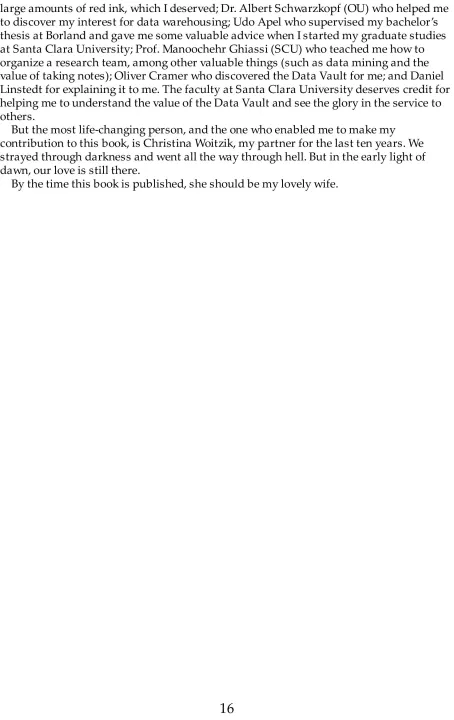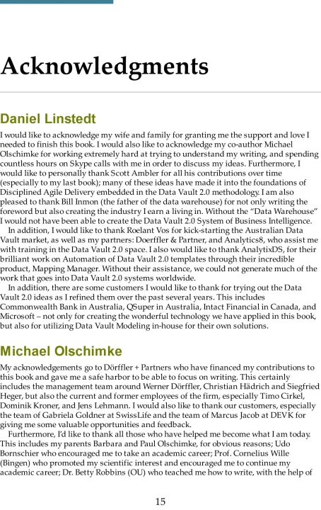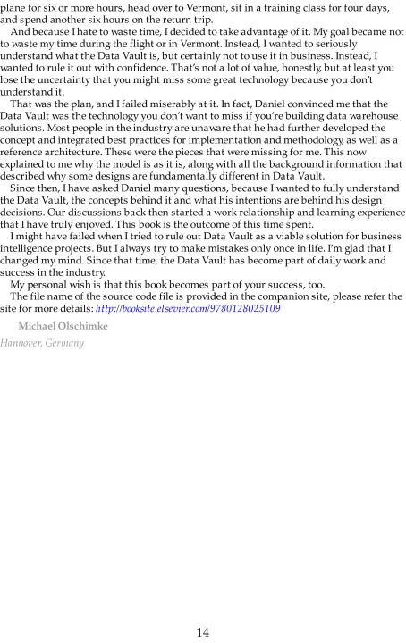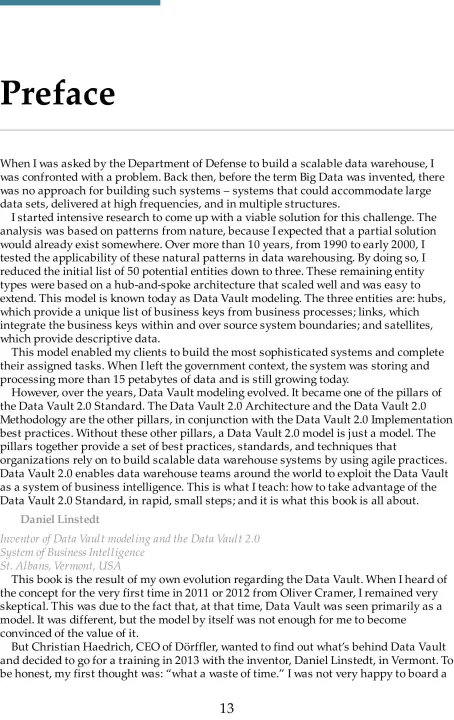 "Building a Scalable Data Warehouse" covers everything one needs to know to create a scalable data warehouse end to end, including a presentation of the Data Vault modeling technique, which provides the foundations to create a technical data warehouse layer. The book discusses how to build the data warehouse incrementally using the agile Data Vault 2.0 methodology. In addition, readers will learn how to create the input layer (the stage layer) and the presentation layer (data mart) of the Data Vault 2.0 architecture including implementation best practices. Drawing upon years of practical experience and using numerous examples and an easy to understand framework, Dan Linstedt and Michael Olschimke discuss: