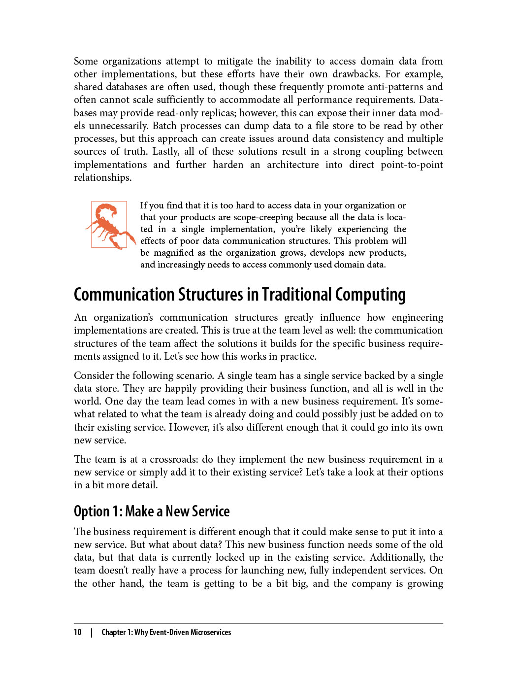 Organizations today often struggle to balance business requirements with ever-increasing volumes of data. Additionally, the demand for leveraging large-scale, real-time data is growing rapidly among the most competitive digital industries. Conventional system architectures may not be up to the task. With this practical guide, you’ll learn how to leverage large-scale data usage across the business units in your organization using the principles of event-driven microservices. Author Adam Bellemare takes you through the process of building an event-driven microservice-powered organization. You’ll reconsider how data is produced, accessed, and propagated across your organization. Learn powerful yet simple patterns for unlocking the value of this data. Incorporate event-driven design and architectural principles into your own systems. And completely rethink how your organization delivers value by unlocking near-real-time access to data at scale. You’ll learn: