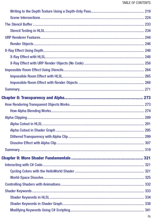 shaders, lighting, depth-based effects, texture mapping, and Shader
