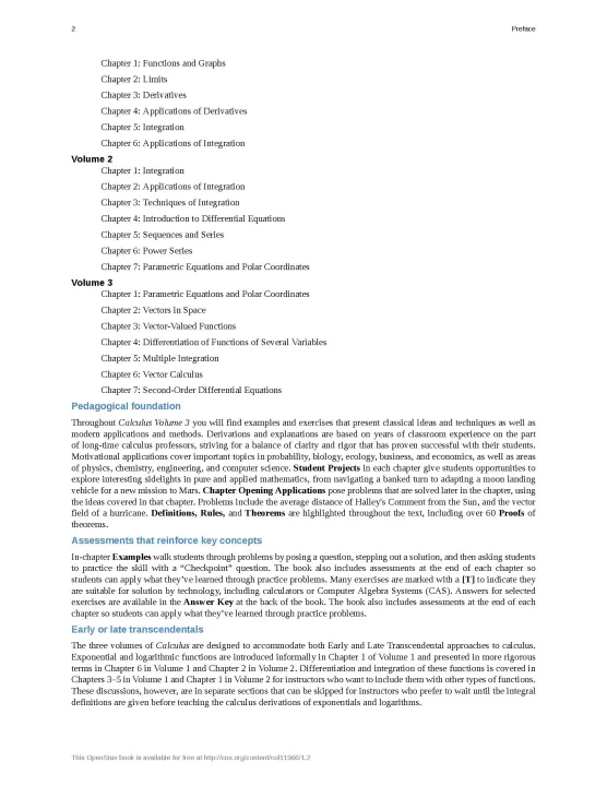 Calculus is designed for the typical two- or three-semester general calculus course, incorporating innovative features to enhance student learning. The book guides students through the core concepts of calculus and helps them understand how those concepts apply to their lives and the world around them. Due to the comprehensive nature of the material, we are offering the book in three volumes for flexibility and efficiency.