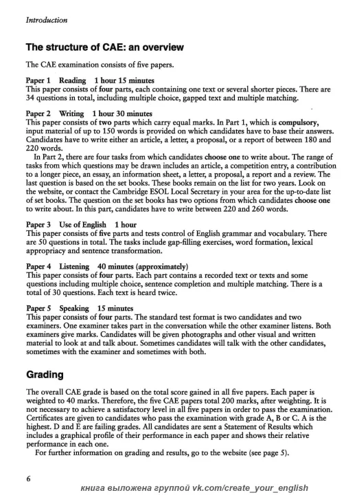 Cambridge University Press is the only official publisher of past papers from Cambridge ESOL. These official papers provide candidates with an excellent opportunity to familiarise themselves with the updated content and format of the CAE examination, introduced in December 2008. This Self-study pack contains the Students Book with answers and the Audio CDs (2). Some of the material for the tests in this book has been previously published in Cambridge Certificate in Advanced English 5, now updated to reflect the latest FCE exam specifications.
