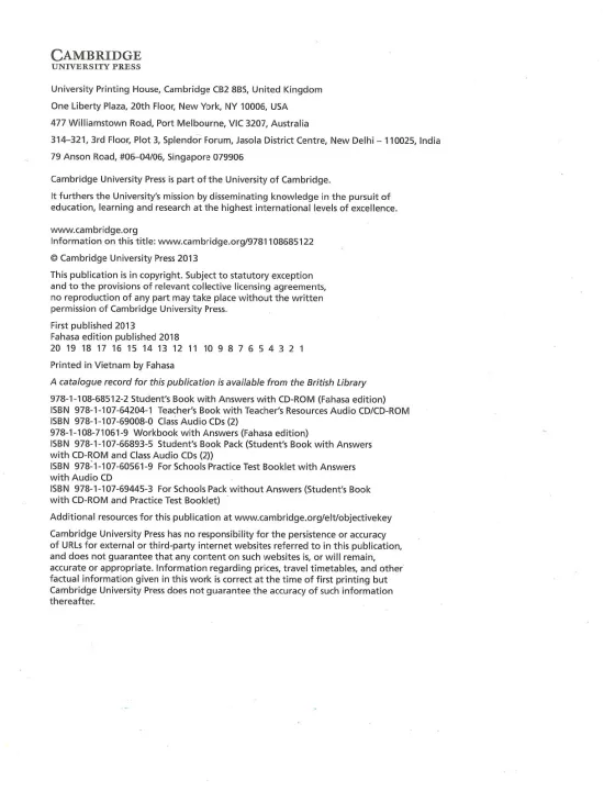 sản phẩm Cambridge english objective key student's book và workbook
