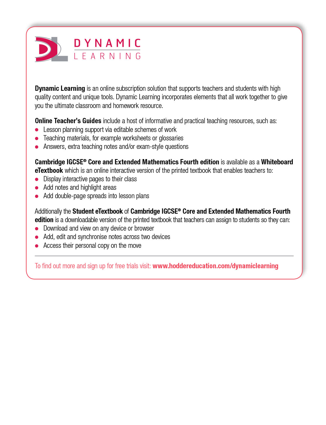 Rely on a tried-and-tested approach to improving mathematical skills; ensure full coverage of the latest Cambridge IGCSE Mathematics Core syllabus (0580/0980) with a new emphasis on problem-solving.