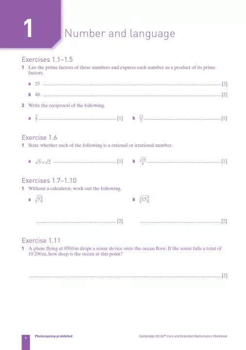 Đặc tính sản phẩm Cambridge IGCSE Mathematics Core and Extended