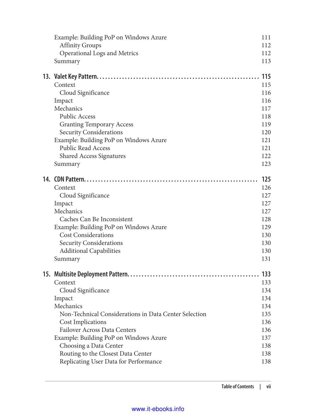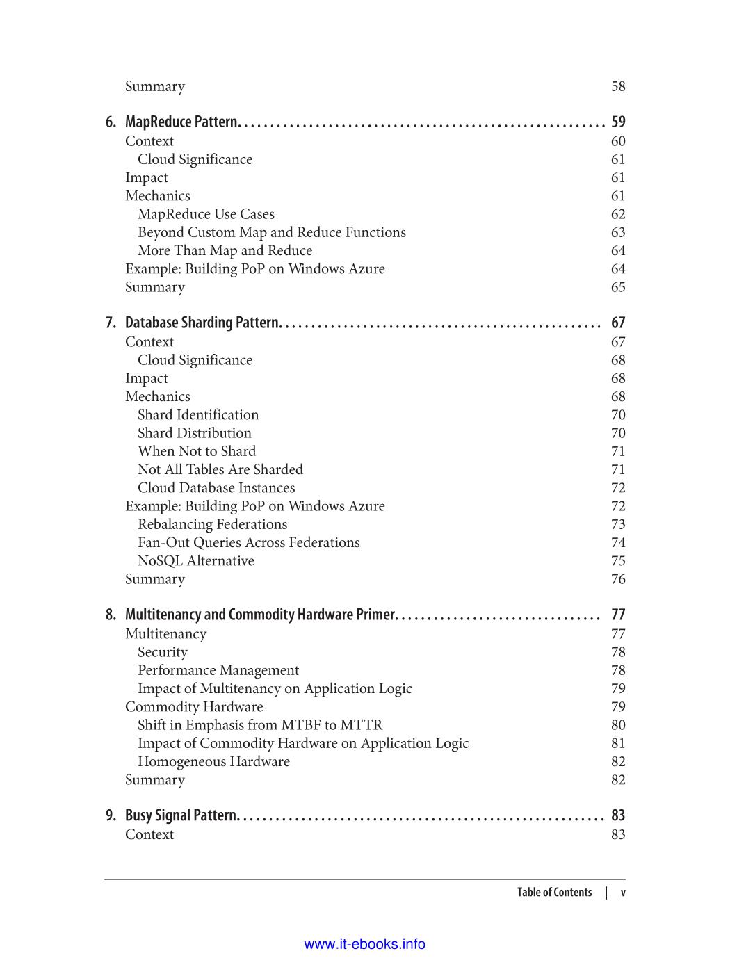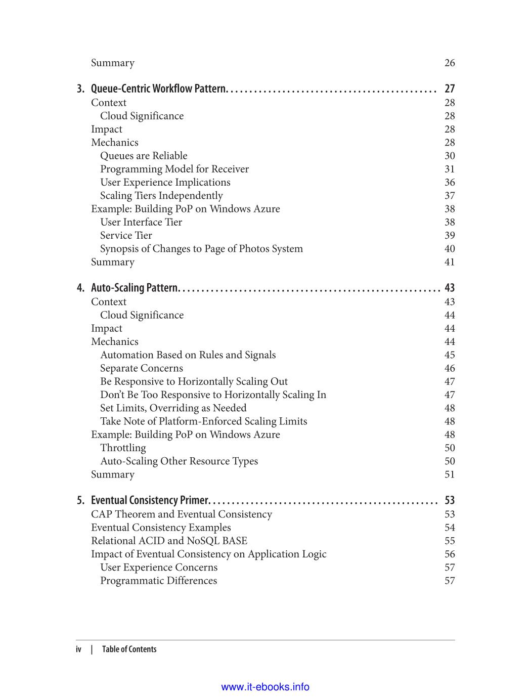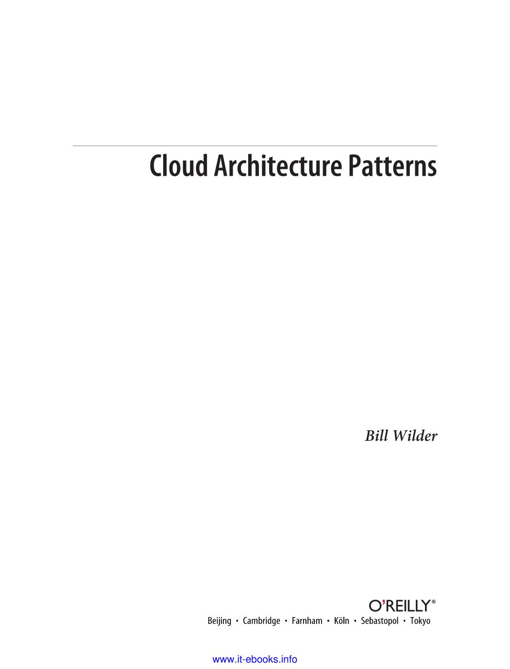 If your team is investigating ways to design applications for the cloud, this concise book introduces 11 architecture patterns that can help you take advantage of cloud-platform services. You'll learn how each of these platform-agnostic patterns work, when they might be useful in the cloud, and what impact they'll have on your application architecture. You'll also see an example of each pattern applied to an application built with Windows Azure. The patterns are organized into four major topics, such as scalability and handling failure, and primer chapters provide background on each topic. With the information in this book, you'll be able to make informed decisions for designing effective cloud-native applications that maximize the value of cloud services, while also paying attention to user experience and operational efficiency.