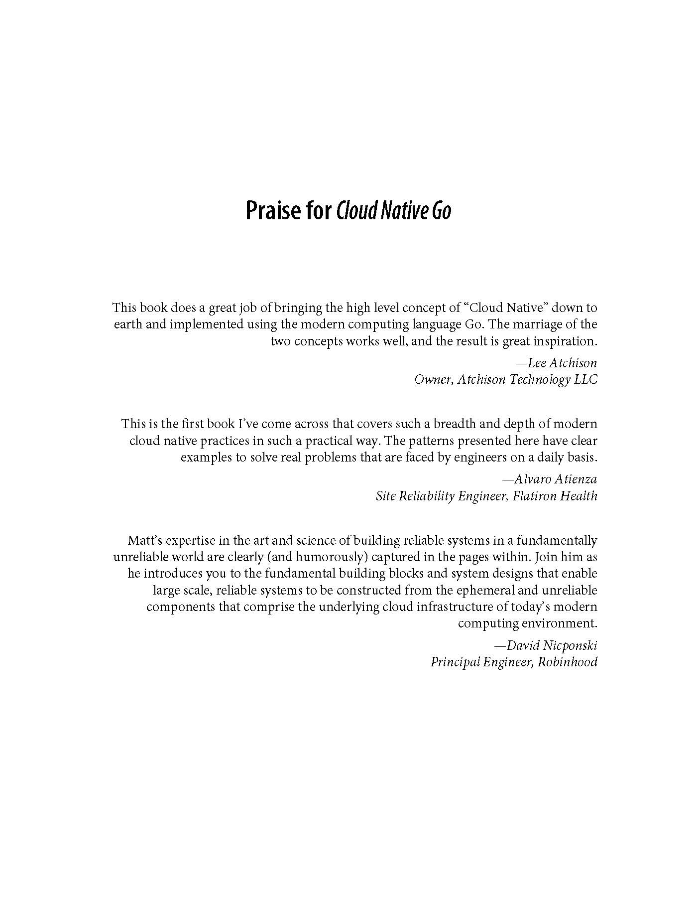 What do Docker, Kubernetes, and Prometheus have in common? All of these cloud native technologies are written in the Go programming language. This practical book shows you how to use Go's strengths to develop cloud native services that are scalable and resilient, even in an unpredictable environment. You'll explore the composition and construction of these applications, from lower-level features of Go to mid-level design patterns to high-level architectural considerations.