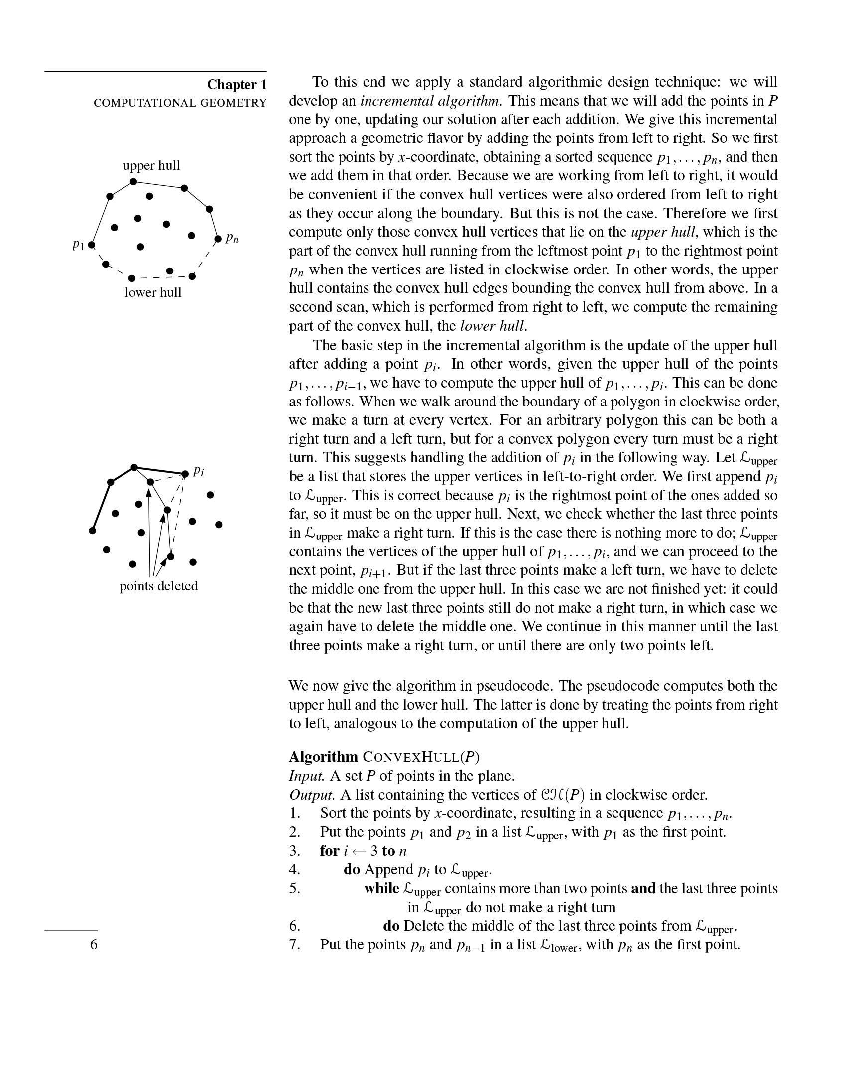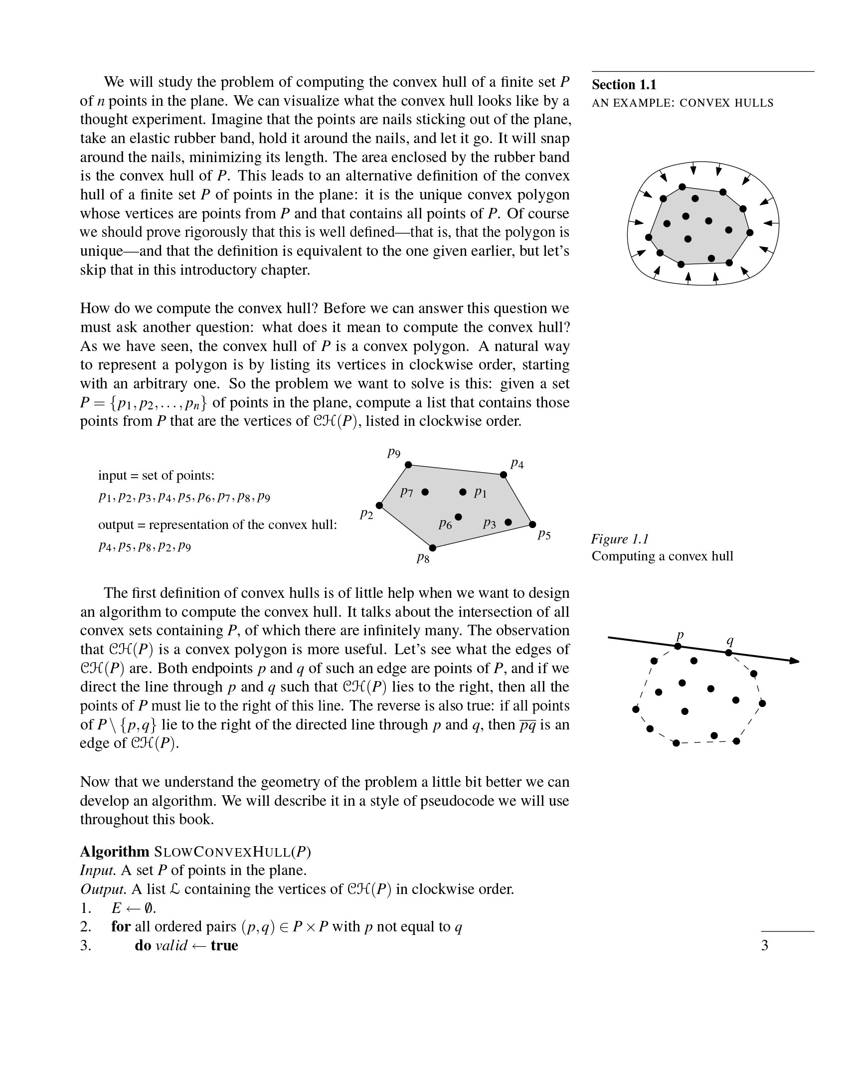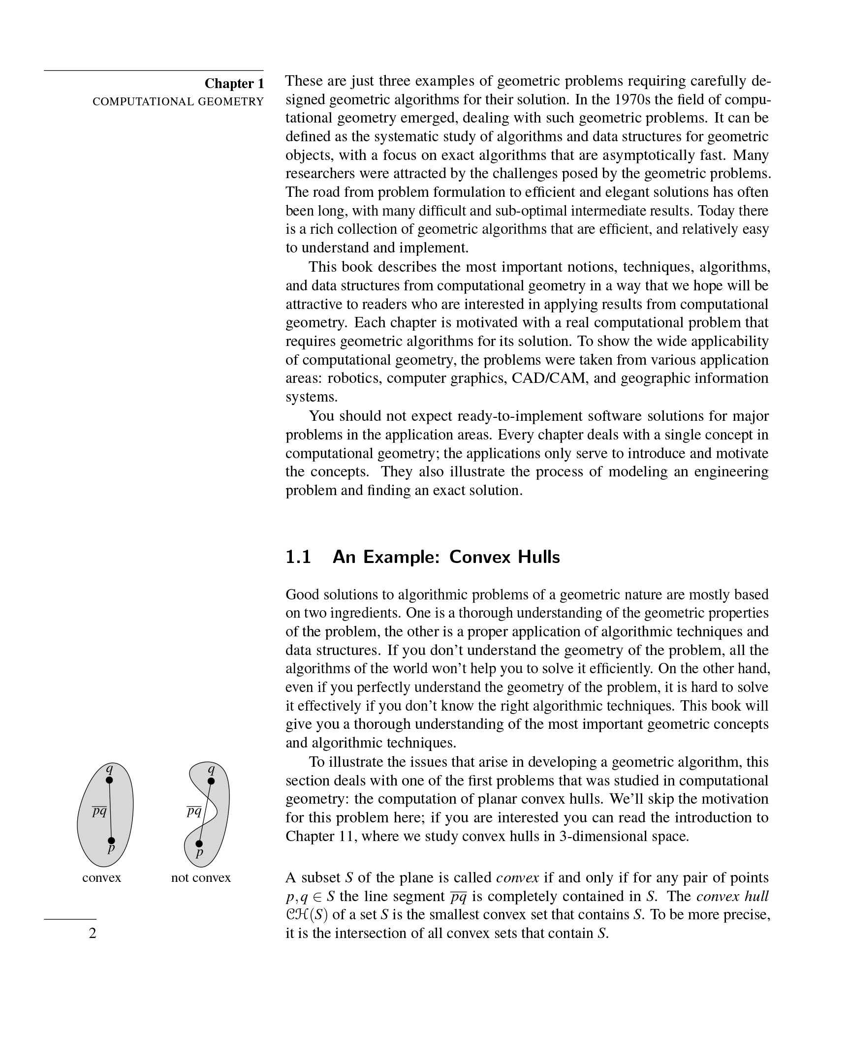 Computational geometry emerged from the field of algorithms design and analysis in the late 1970s. It has grown into a recognized discipline with its own journals, conferences, and a large community of active researchers. The success of the ?eld as a research discipline can on the one hand be explained from the beauty of the problems studied and the solutions obtained, and, on the other hand, by the many application domains—computer graphics, geographic information systems (GIS), robotics, and others—in which geometric algorithms play a fundamental role. For many geometric problems the early algorithmic solutions were either slow or dif?cult to understand and implement. In recent years a number of new algorithmic techniques have been developed that improved and simpli?ed many of the previous approaches. In this textbook we have tried to make these modern algorithmic solutions accessible to a large audience. The book has been written as a textbook for a course in computational geometry, but it can also be used for self-study.