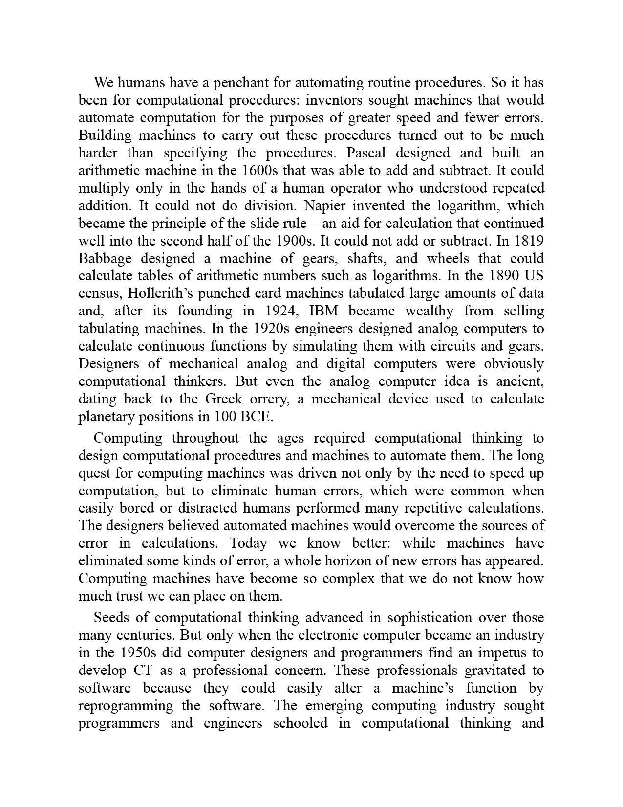 An introduction to computational thinking that traces a genealogy beginning centuries before the digital computer.