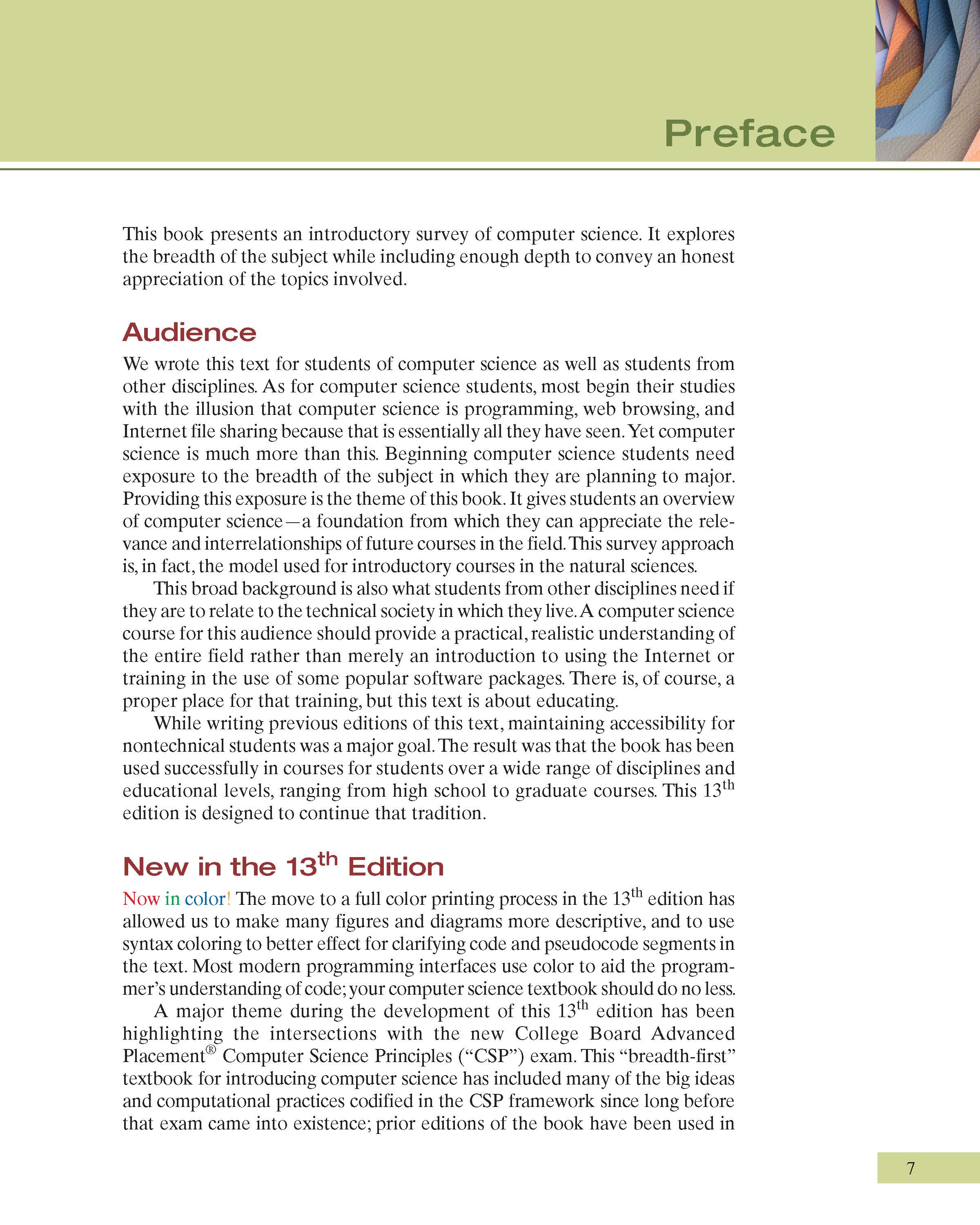 Computer Science: An Overview provides a bottom-up, concrete-to-abstract foundation that students can build upon to see the relevance and interrelationships of future computer science courses. Its comprehensive coverage and clear language are accessible to students from all backgrounds, encouraging a practical and realistic understanding.