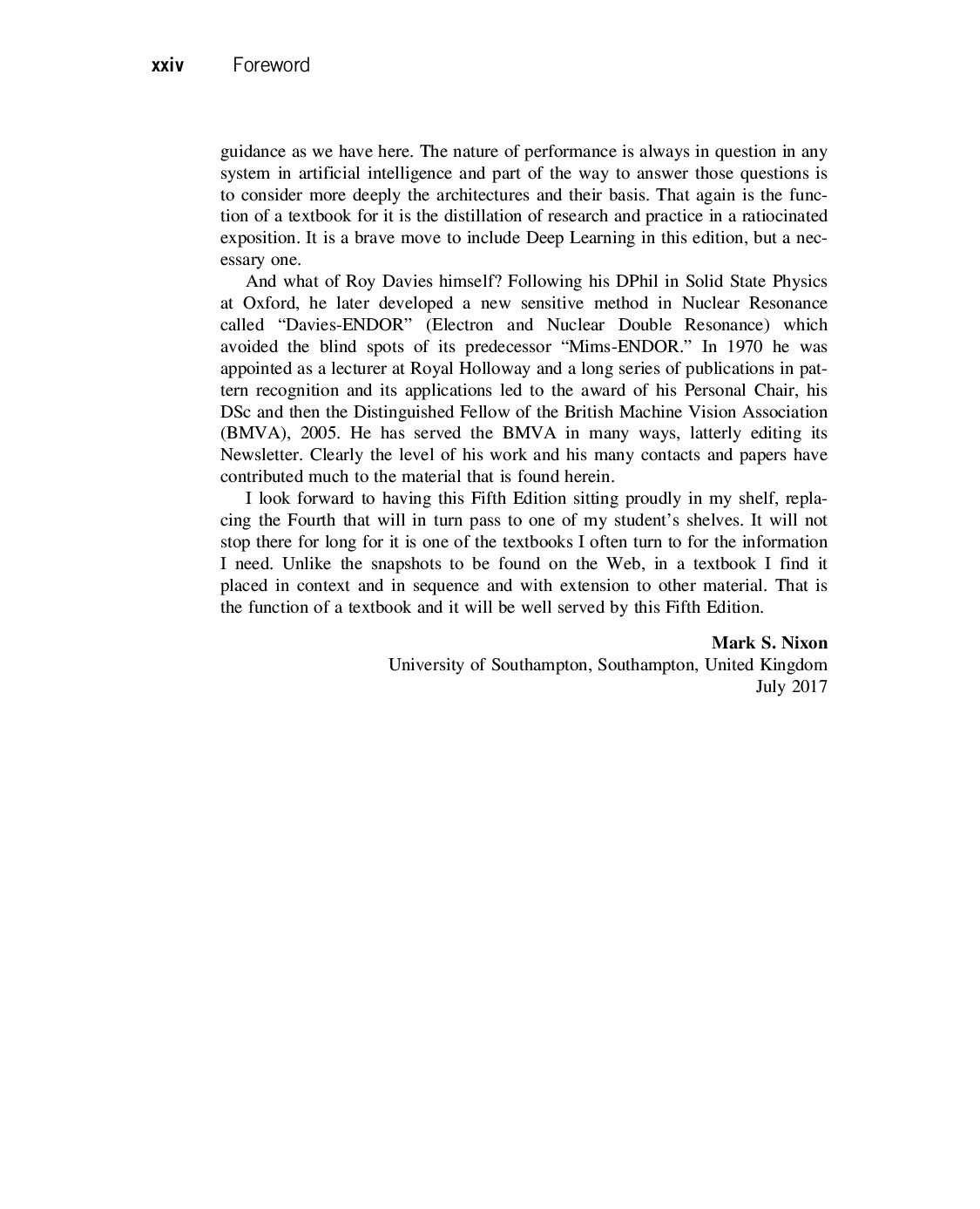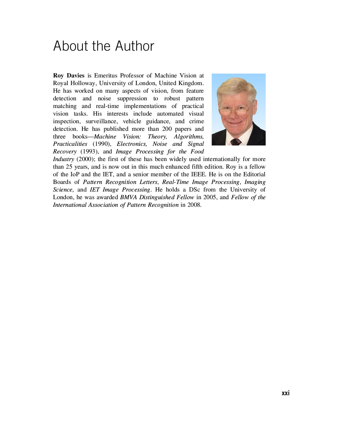 Computer Vision: Principles, Algorithms, Applications, Learning (previously entitled Computer and Machine Vision) clearly and systematically presents the basic methodology of computer vision, covering the essential elements of the theory while emphasizing algorithmic and practical design constraints. This fully revised fifth edition has brought in more of the concepts and applications of computer vision, making it a very comprehensive and up-to-date text suitable for undergraduate and graduate students, researchers and R&D engineers working in this vibrant subject.