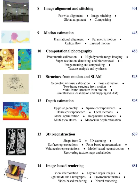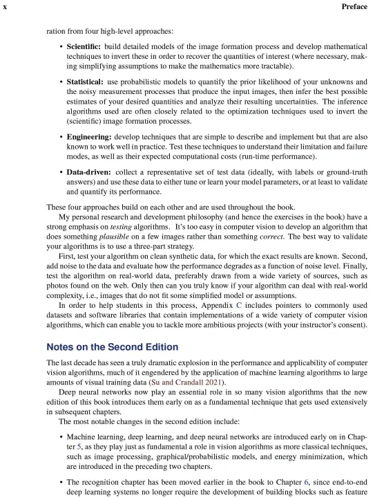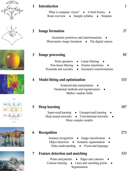 Appendices, which cover linear algebra, numerical techniques, estimation