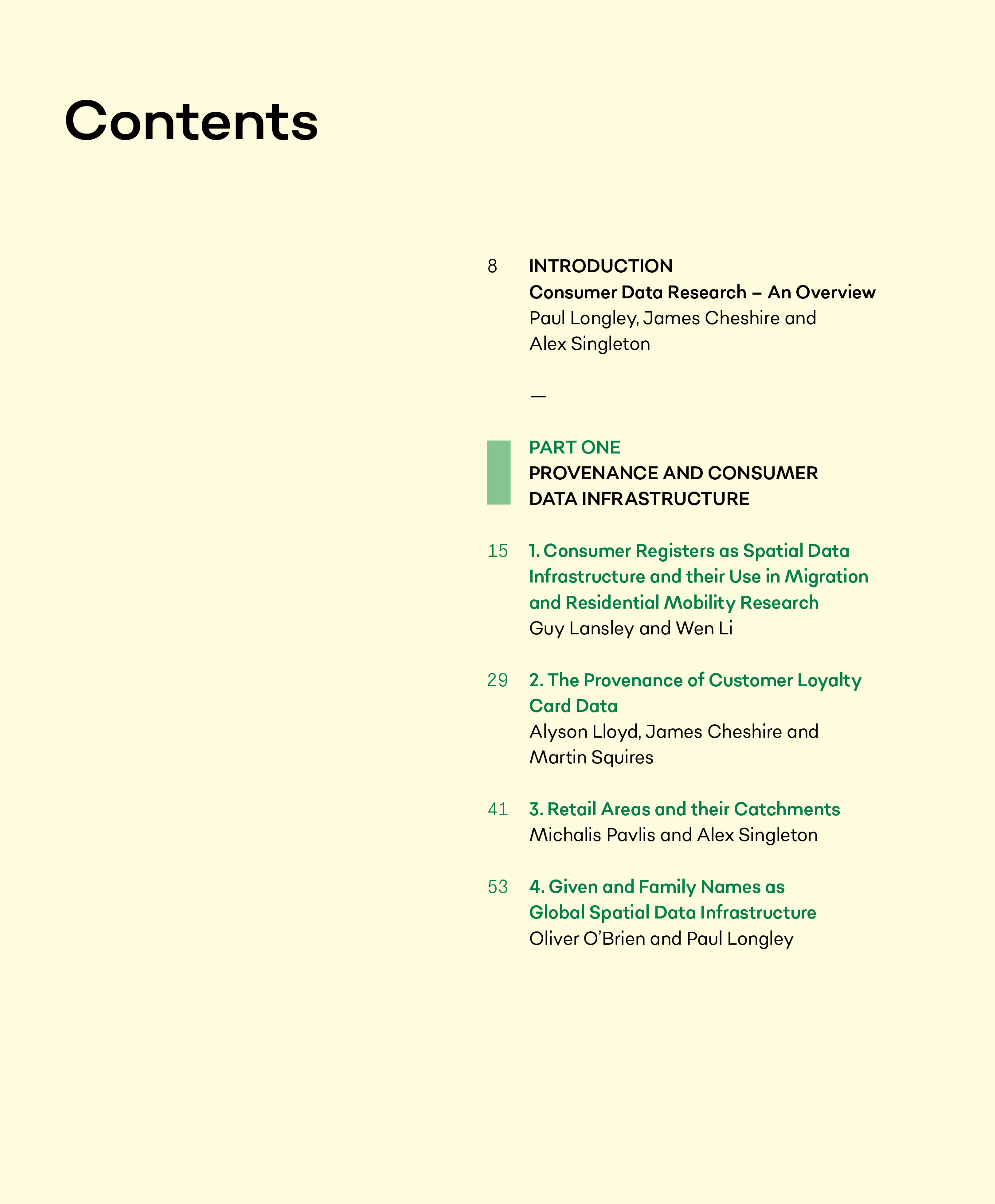 Big Data collected by customer-facing organisations – such as smartphone logs, store loyalty card transactions, smart travel tickets, social media posts, or smart energy meter readings – account for most of the data collected about citizens today. As a result, they are transforming the practice of social science. Consumer Big Data are distinct from conventional social science data not only in their volume, variety and velocity, but also in terms of their provenance and fitness for ever more research purposes. The contributors to this book, all from the Consumer Data Research Centre, provide a first consolidated statement of the enormous potential of consumer data research in the academic, commercial and government sectors – and a timely appraisal of the ways in which consumer data challenge scientific orthodoxies.