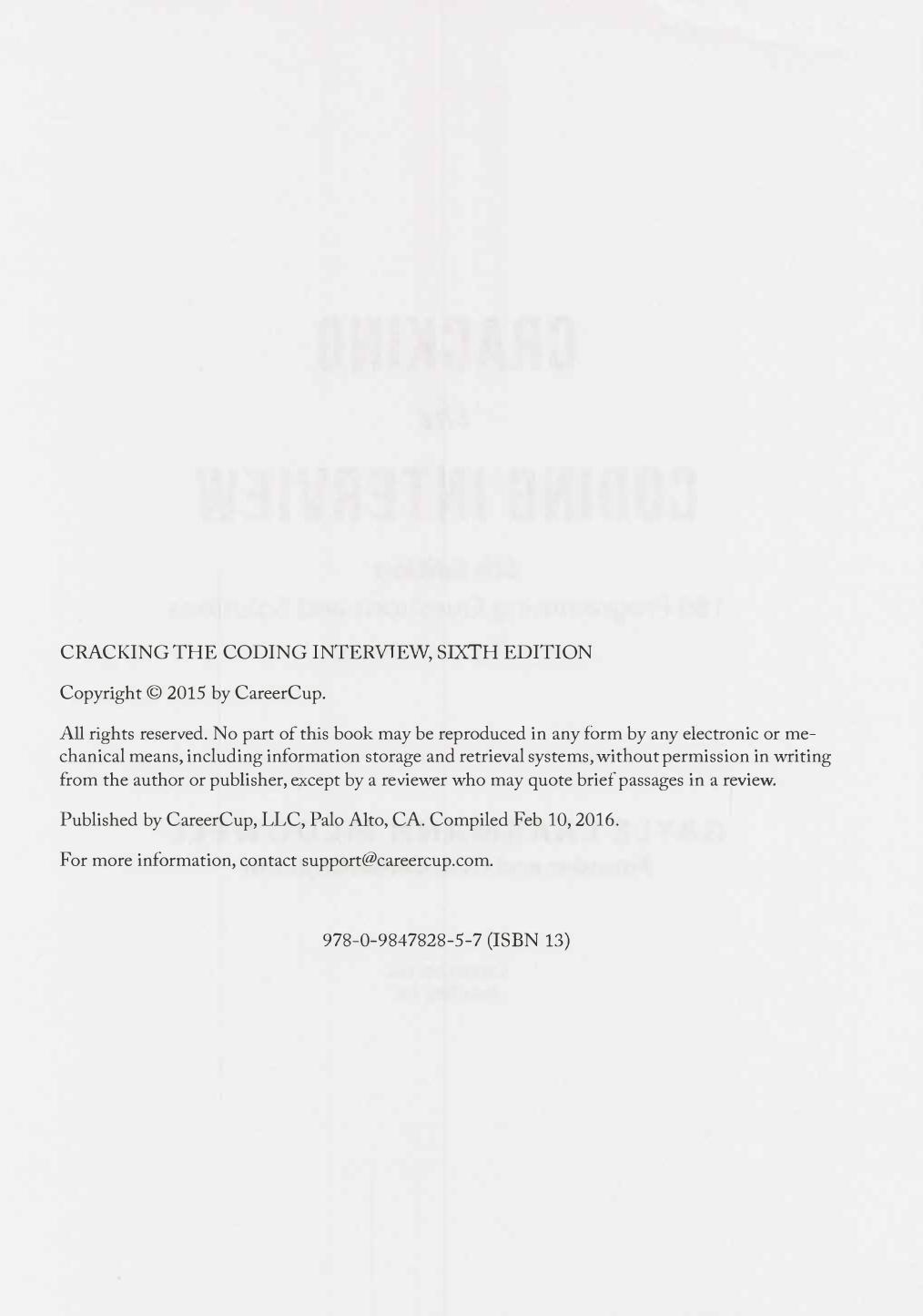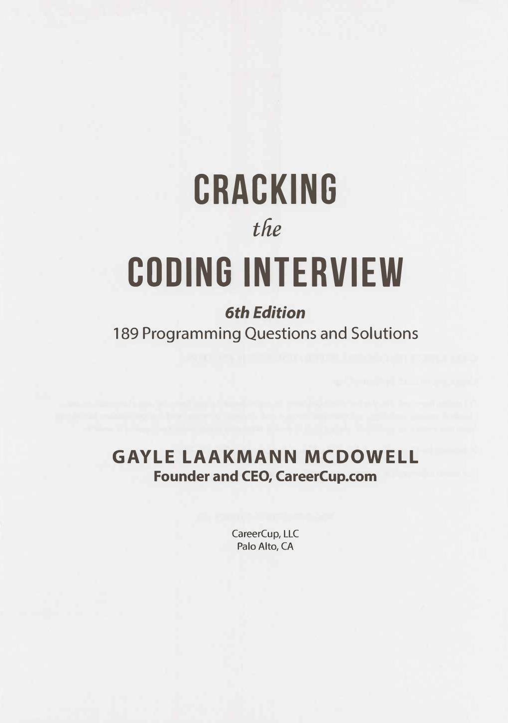 Cracking the Coding Interview, 6th Edition is here to help you through this process, teaching you what you need to know and enabling you to perform at your very best. I've coached and interviewed hundreds of software engineers. The result is this book.