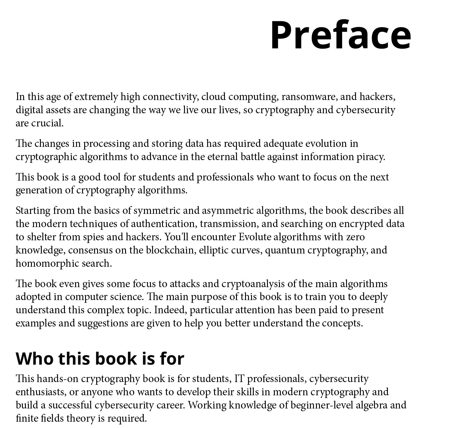 Build your real-world cryptography knowledge, from understanding the fundamentals to implementing the most popular modern-day algorithms to excel in your cybersecurity career Key Features: Learn modern algorithms such as zero-knowledge, elliptic curves, and quantum cryptography Explore vulnerability and new logical attacks on the most-used algorithms Understand the practical implementation of algorithms and protocols in cybersecurity applications Book Description: Cryptography Algorithms is designed to help you get up and running with modern cryptography algorithms. You'll not only explore old and modern security practices but also discover practical examples of implementing them effectively. The book starts with an overview of cryptography, exploring key concepts including popular classical symmetric and asymmetric algorithms, protocol standards, and more. You'll also cover everything from building crypto codes to breaking the