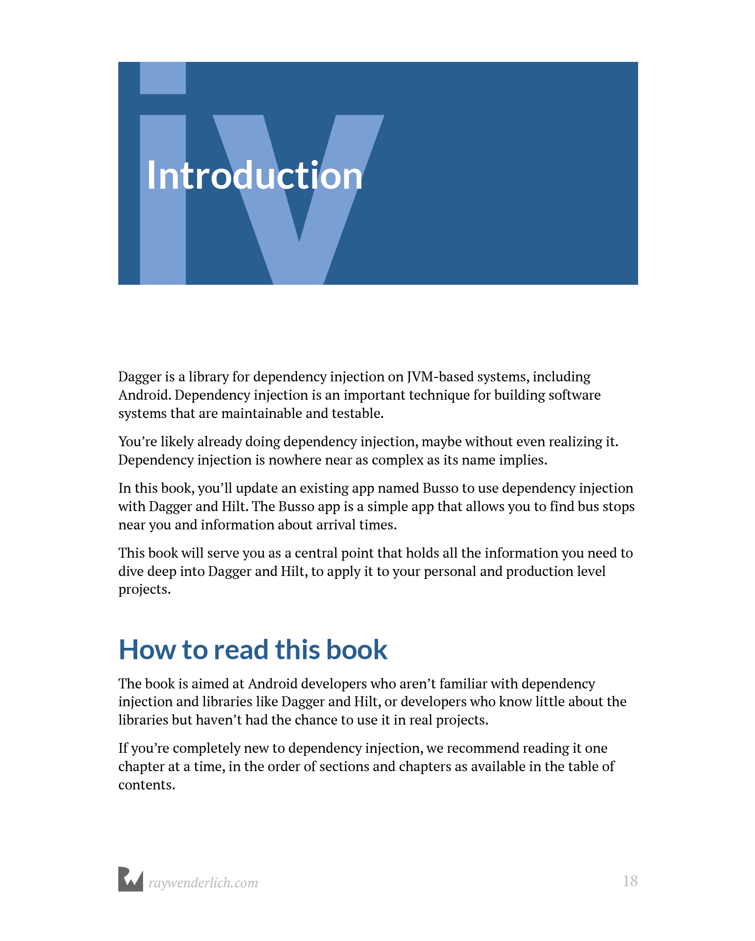 This book is for intermediate Kotlin or Android developers who want to know how to implement the dependency injection pattern with Dagger and Hilt libraries.