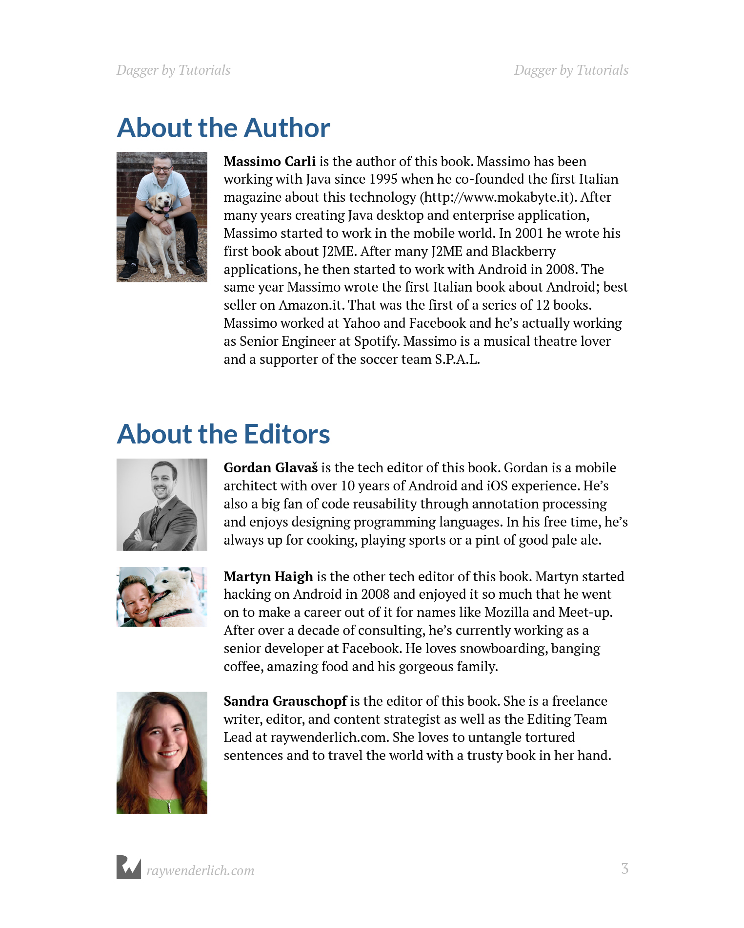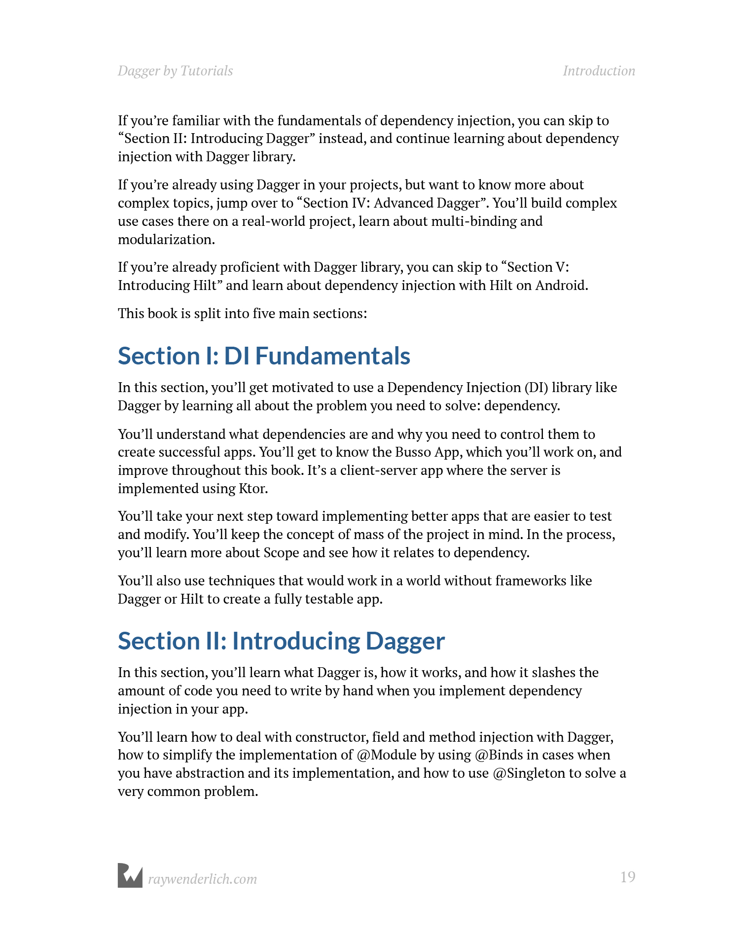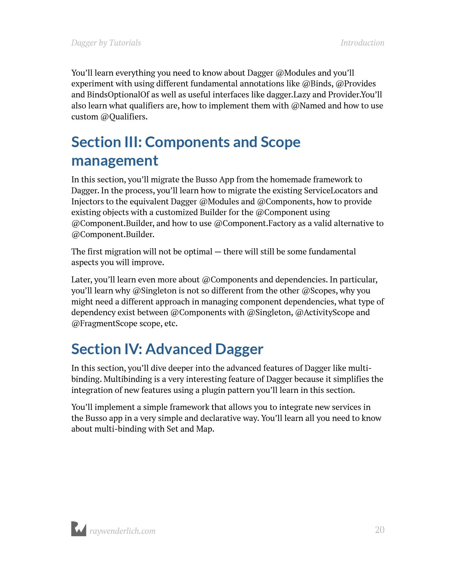 This book will guide you through with Dagger, Google’s framework for Java, Kotlin, and Android. Dagger will help you solve many of the development and performance issues that have plagued reflection-based solutions.