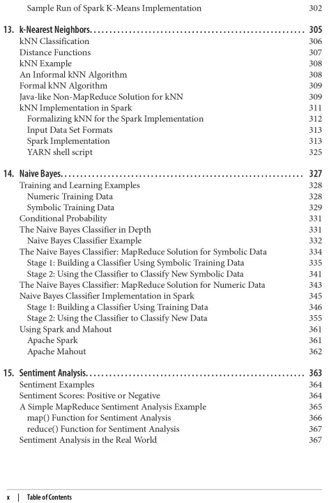 book also includes an overview of MapReduce, Hadoop, and Spark.