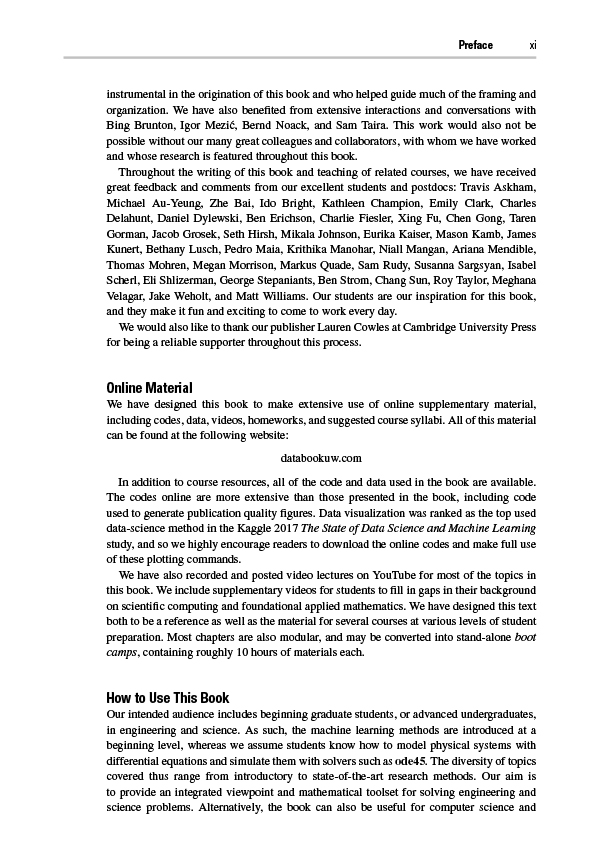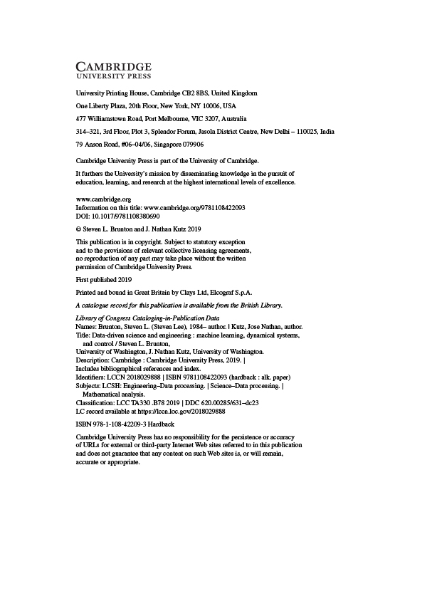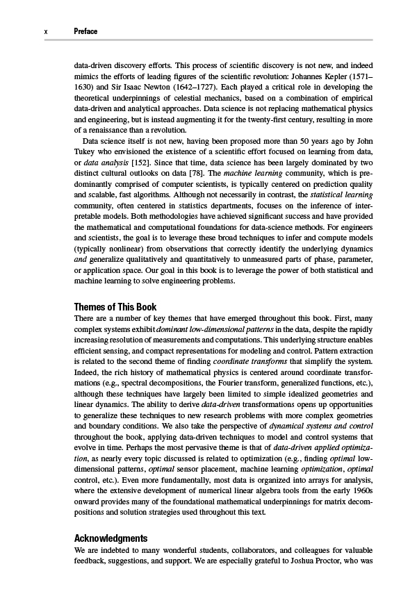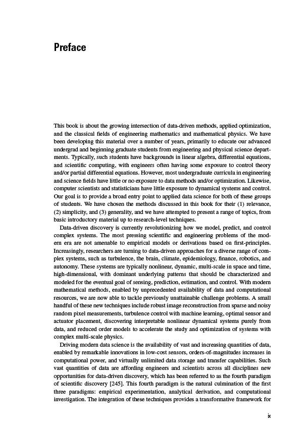 Data-driven discovery is revolutionizing the modeling, prediction, and control of complex systems. This textbook brings together machine learning, engineering mathematics, and mathematical physics to integrate modeling and control of dynamical systems with modern methods in data science. It highlights many of the recent advances in scientific computing that enable data-driven methods to be applied to a diverse range of complex systems, such as turbulence, the brain, climate, epidemiology, finance, robotics, and autonomy. Aimed at advanced undergraduate and beginning graduate students in the engineering and physical sciences, the text presents a range of topics and methods from introductory to state of the art.