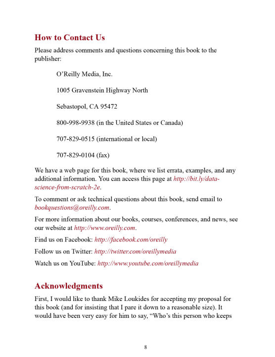 To really learn data science, you should not only master the tools--data science libraries, frameworks, modules, and toolkits--but also understand the ideas and principles underlying them. Updated for Python 3.6, this second edition of Data Science from Scratch shows you how these tools and algorithms work by implementing them from scratch. If you have an aptitude for mathematics and some programming skills, author Joel Grus will help you get comfortable with the math and statistics at the core of data science, and with the hacking skills you need to get started as a data scientist. Packed with new material on deep learning, statistics, and natural language processing, this updated book shows you how to find the gems in today's messy glut of data. Get a crash course in Python Learn the basics of linear algebra, statistics, and probability--and how and when they're used in data science Collect, explore, clean, munge, and manipulate data Dive into the fundamentals of machine learning Implement models such as k-nearest neighbors, Naïve Bayes, linear and logistic regression, decision trees, neural networks, and clustering Explore recommender systems, natural language processing, network analysis, MapReduce, and databases