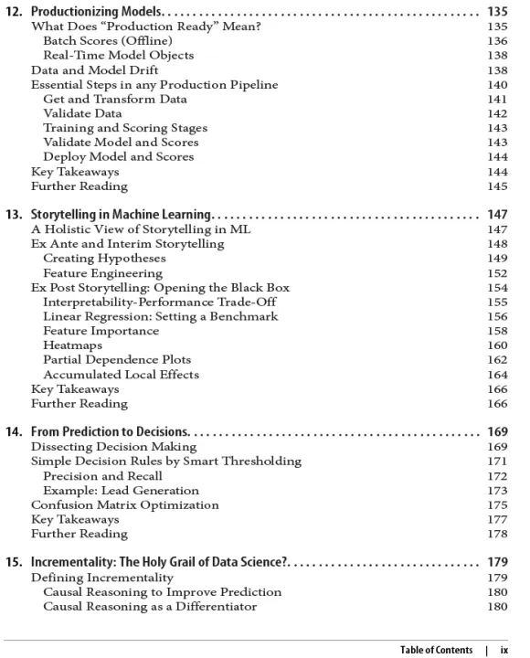 This practical guide provides a collection of techniques and best practices that are generally overlooked in most data engineering and data science pedagogy. A common misconception is that great data scientists are experts in the "big themes" of the discipline—machine learning and programming. But most of the time, these tools can only take us so far. In practice, the smaller tools and skills really separate a great data scientist from a not-so-great one. Taken as a whole, the lessons in this book make the difference between an average data scientist candidate and a qualified data scientist working in the field. Author Daniel Vaughan has collected, extended, and used these skills to create value and train data scientists from different companies and industries. With this book, you will: Understand how data science creates value Deliver compelling narratives to sell your data science project Build a business case using unit economics principles Create new features for a ML model using storytelling Learn how to decompose KPIs Perform growth decompositions to find root causes for changes in a metric Daniel Vaughan is head of data at Clip, the leading paytech company in Mexico. He's the author of Analytical Skills for AI and Data Science (O'Reilly).