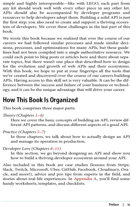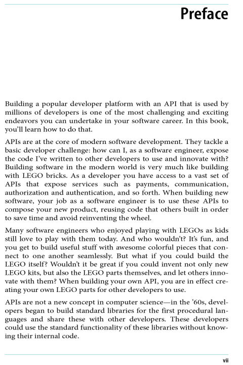 Using a web API to provide services to application developers is one of the more satisfying endeavors that software engineers undertake. But building a popular API with a thriving developer ecosystem is also one of the most challenging. With this practical guide, developers, architects, and tech leads will learn how to navigate complex decisions for designing, scaling, marketing, and evolving interoperable APIs.
