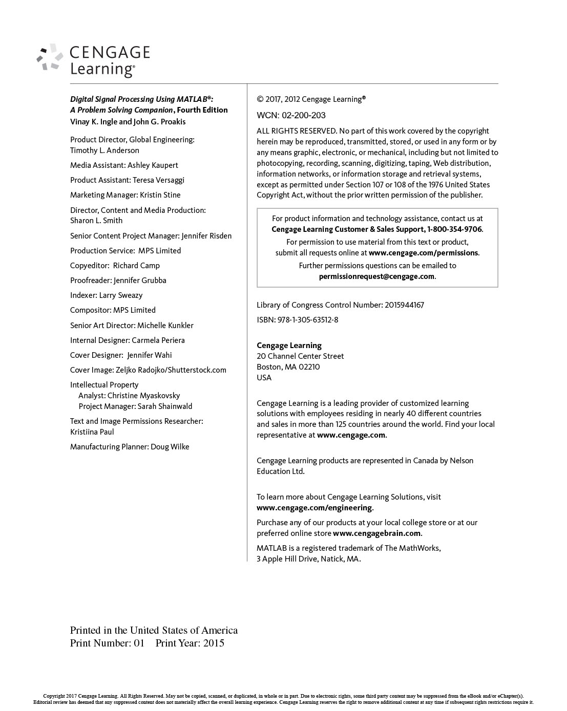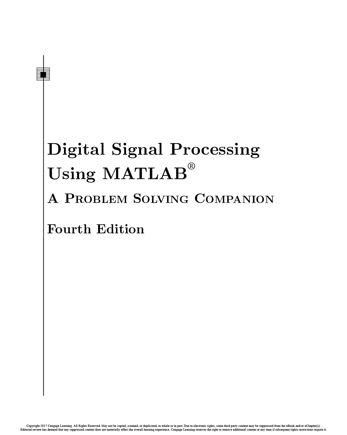Learn to use MATLAB as a useful computing tool for exploring traditional Digital Signal Processing (DSP) topics and solving problems to gain insight with this supplementary text. DIGITAL SIGNAL PROCESSING USING MATLAB: A PROBLEM SOLVING COMPANION, 4E greatly expands the range and complexity of problems that you can effectively study. Since DSP applications are primarily algorithms implemented on a DSP processor or software, they require a significant amount of programming. Using interactive software, such as MATLAB, enables you to focus on mastering new and challenging concepts rather than concentrating on programming algorithms. This edition discusses interesting, practical examples and explores useful problems. New online chapters introduce advanced topics, such as optimal filters, linear prediction, and adaptive filters, which are essential in furthering your academic studies at the graduate level.
