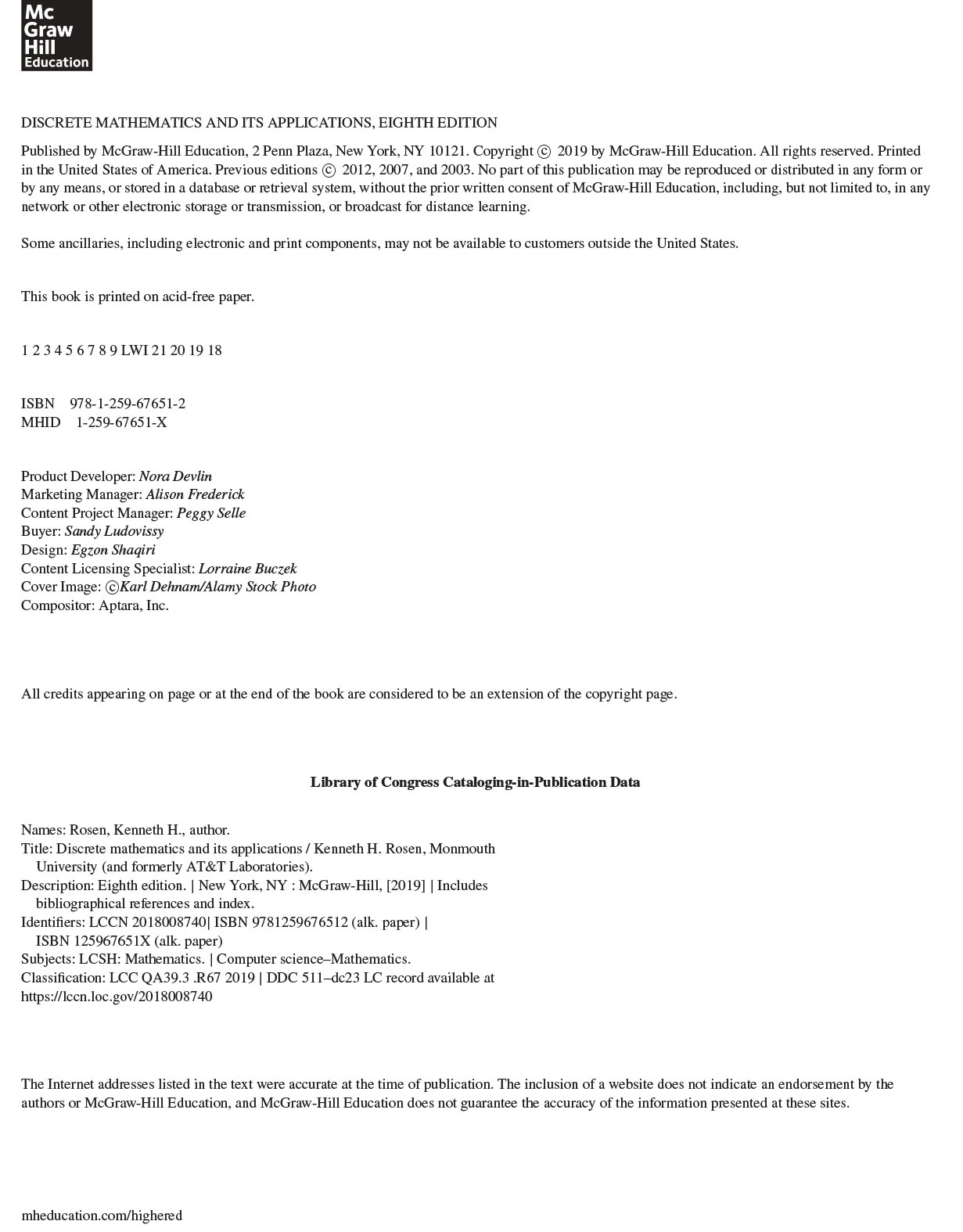 Discrete Mathematics and Its Applications (Sách gia công, bìa mềm)