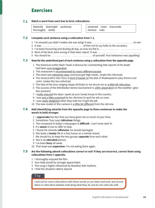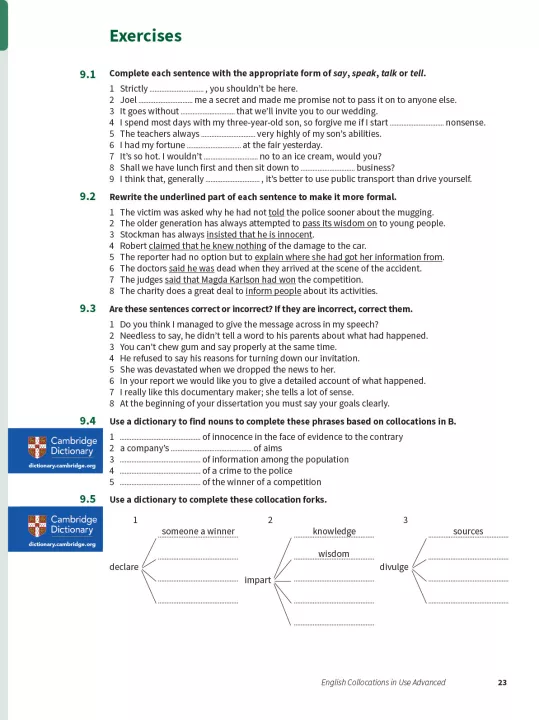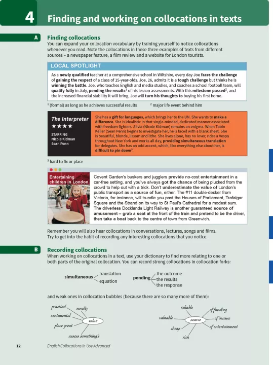 Improve your fluency and sound more natural in English. Collocations are combinations of words which frequently appear together. This book contains explanations and practice of English collocations for advanced-level (C1 to C2) learners of English. Perfect for both self-study and classroom activities. Learn collocations in context, with lots of different topics, including 'Writing essays, assignments and reports'. Be confident about what you are learning, thanks to Cambridge research into how English is really spoken and written, and get better at studying by yourself, with study tips and follow-up activities. This book is also perfect for preparing for Cambridge exams and IELTS, which often test knowledge of collocations.
