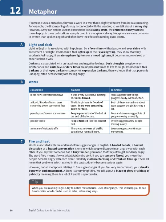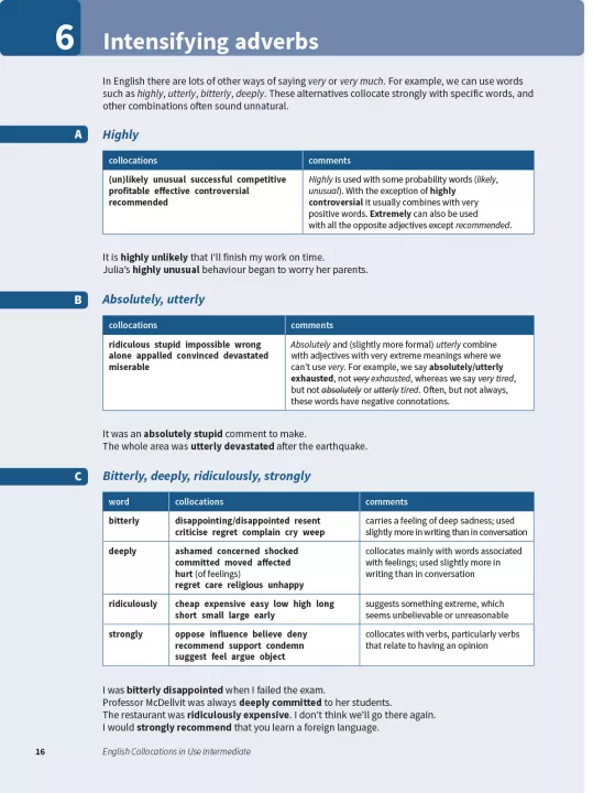 Improve your fluency and sound more natural in English. Collocations are combinations of words which frequently appear together. This book contains explanations and practice of English collocations for intermediate-level (B1 to B2) learners of English. Perfect for both self-study and classroom activities. Learn collocations in context, with lots of different topics, including 'Using the Internet' and 'Presentations'. Be confident about what you are learning, thanks to Cambridge research into how English is really spoken and written, and get better at studying by yourself, with study tips and follow-up activities. This book is also perfect for preparing for Cambridge exams and IELTS, which often test knowledge of collocations.