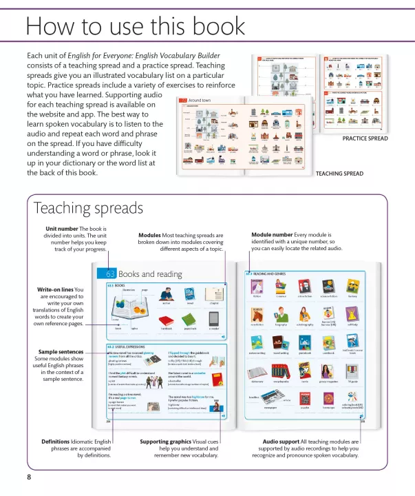 Series Overview: English for Everyone series teaches all levels of English, from beginner to advanced, to speakers of English as a second language. Innovative visual learning methods introduce key language skills, grammar, and vocabulary, which are reinforced with a variety of speaking, reading, and writing exercises to make the English language easier to understand and learn.