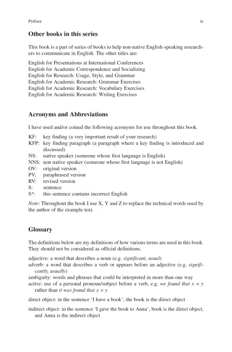 Publishing your research in an international journal is key to your success in academia. This guide is based on a study of referees' reports and letters from journal editors on reasons why papers written by non-native researchers are rejected due to problems with English usage. It draws on English-related errors from around 5000 papers written by non-native authors, 500 abstracts by PhD students, and over 1000 hours of teaching researchers how to write and present research papers.