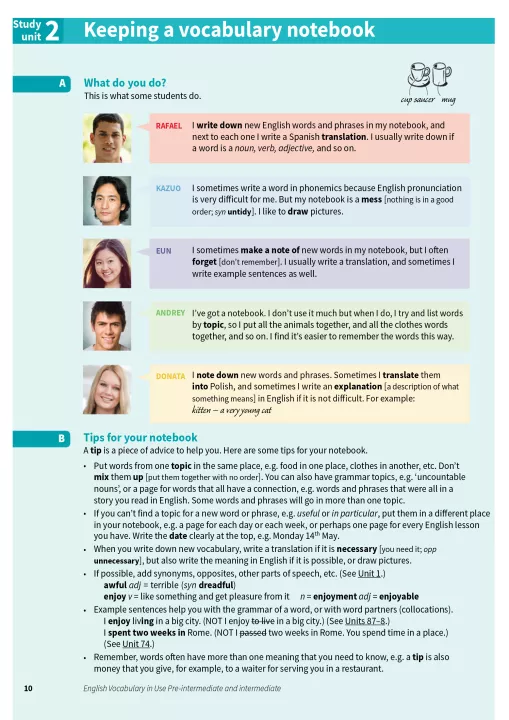 The words you need to communicate with confidence. Vocabulary explanations and practice for pre-intermediate and intermediate level (B1) learners of English. Perfect for both self-study and classroom activities. Quickly expand your vocabulary with 100 units of easy to understand explanations and practice exercises. Be confident about what you are learning, thanks to Cambridge research into how English is really spoken and written, and get better at studying by yourself, with units on learning vocabulary, personalised practice and an easy to use answer key.