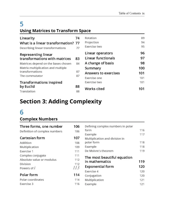 Starting with the most basic of concepts, 2D vectors that are just line segments in space, you'll move on to tackle matrix multiplication using an instinctive method. Linearity is the major theme throughout the book and since quantum mechanics is a linear theory, you'll see how they go hand in hand. As you advance, you'll understand intrinsically what a vector is and how to transform vectors with matrices and operators. You'll also see how complex numbers make their voices heard and understand the probability behind it all.