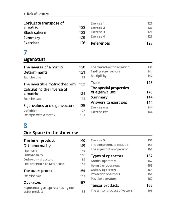 It's all here, in writing you can understand. This is not a stuffy math book with definitions, axioms, theorems, and so on. This book meets you where you're at and guides you to where you need to be for quantum computing. Already know some of this stuff? No problem! The book is componentized, so you can learn just the parts you want. And with tons of exercises and their answers, you'll get all the practice you need.
