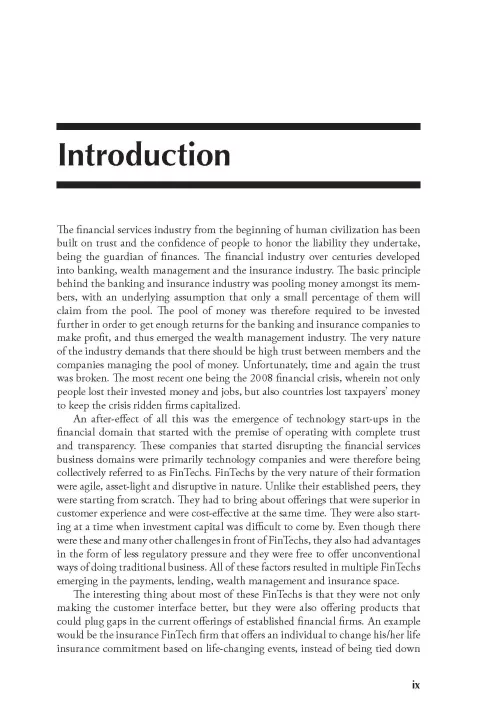 Everything that we know about the world of finance is changing before us. Innovation is happening constantly, despite the protests of the traditional financial industry. With all the new technology that we have today, it is almost mind-blowing to think about the kind of technology that we will have in another ten years or so. The change is going to keep coming, the only thing we can do is get on board with it. This book introduces the basics of FinTech and equips readers with the knowledge to get on the cutting edge of age we live in today.
